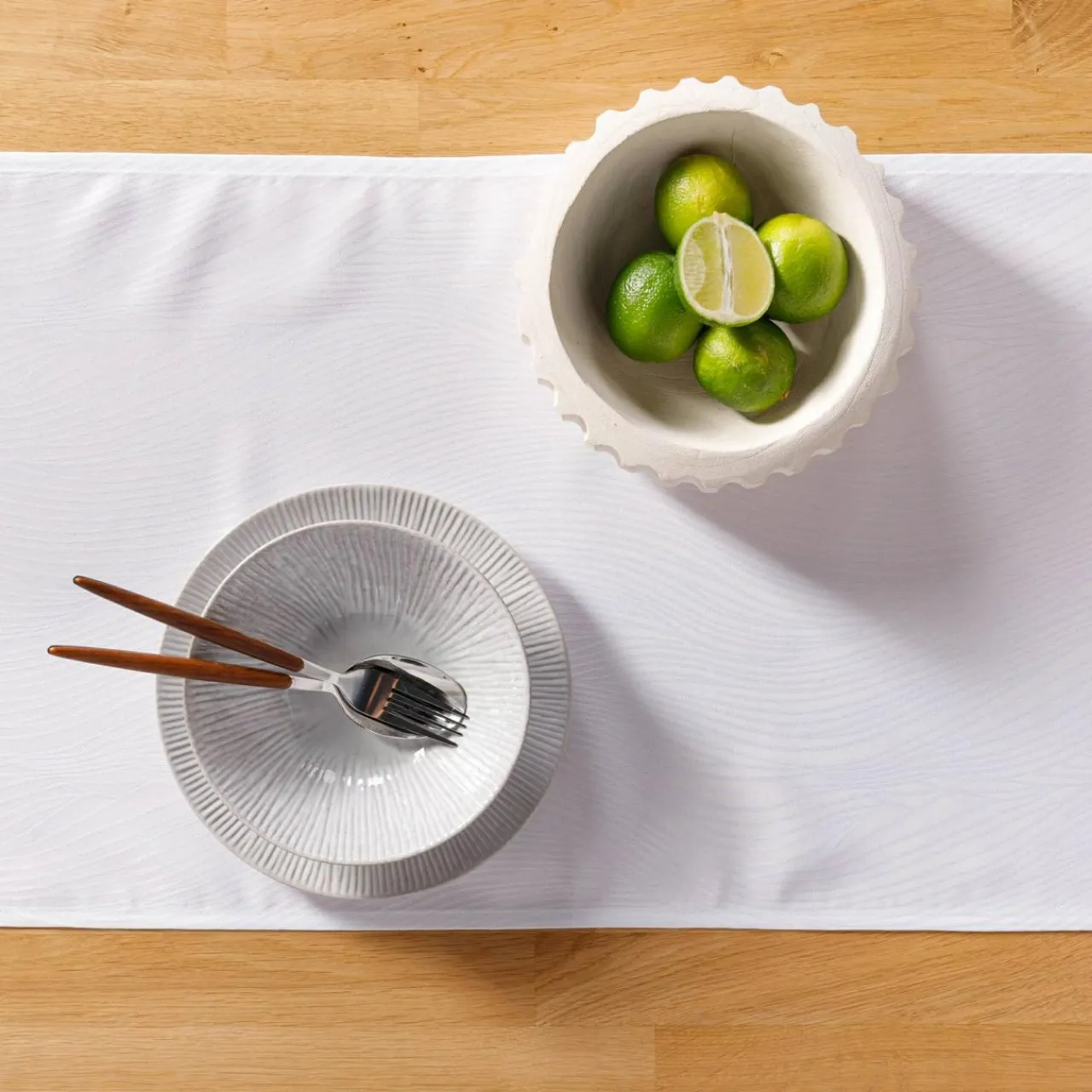 Elegancja w nowoczesnym wydaniu – obrus WAVES zachwyca delikatnym połyskiem oraz subtelnym, falistym wzorem, który przyciąga spojrzenia i dodaje wnętrzu wyrafinowanego charakteru. Kremowy kolor sprawia, iż wspaniale komponuje się zarówno z minimalistycznymi, jak i bardziej klasycznymi aranżacjami.