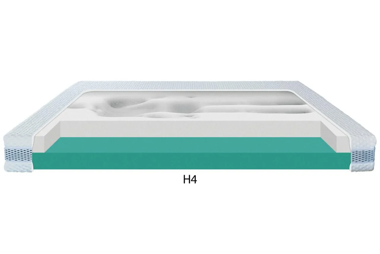 - H4 ( twarda strona ) sprawdzi się dla osób wysokich i o wyższej wadze – obciążenie ortopedyczne do 130 kg.