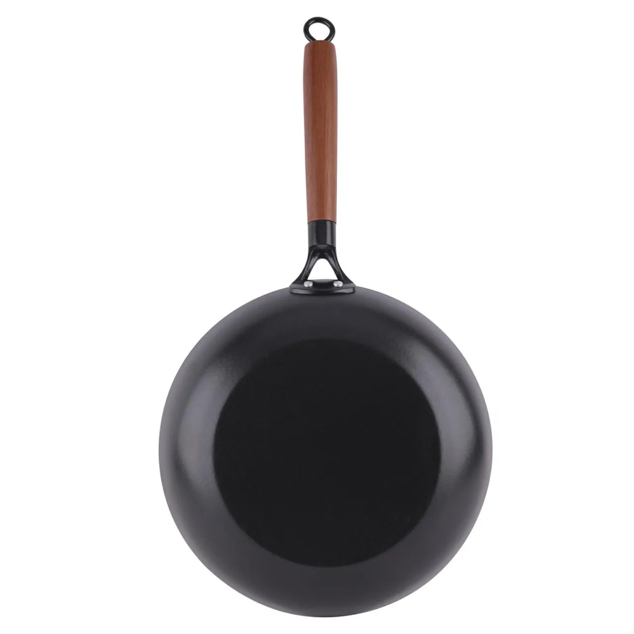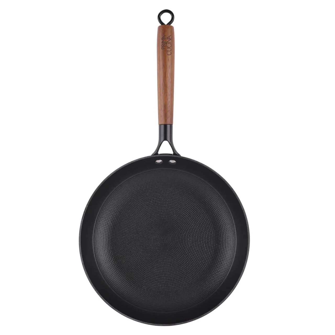 - Rączka jest wykonana z naturalnego akacjowego drewna o ciepłym odcieniu. Patelnia będzie pasować do kuchni w stylu industrialnym.