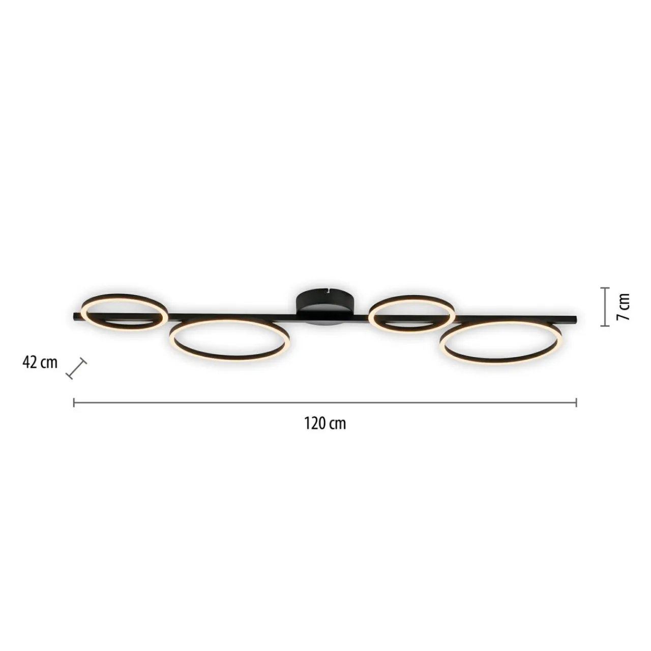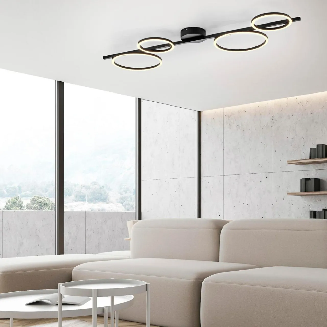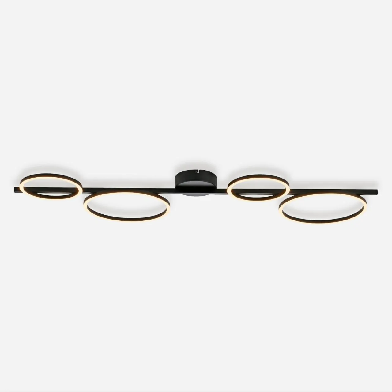 - 4 pierścienie umieszczone na montowanej pod sufitem listwie dodadzą nowoczesnej stylizacji do Twojego salonu lub jadalni.