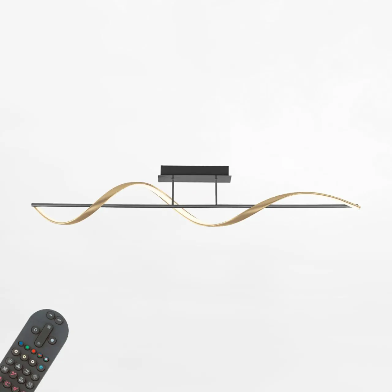 - Sufitowy model lampy Q-SWING to oświetlenie idealne do salonu – posiada szerokość 121 cm.