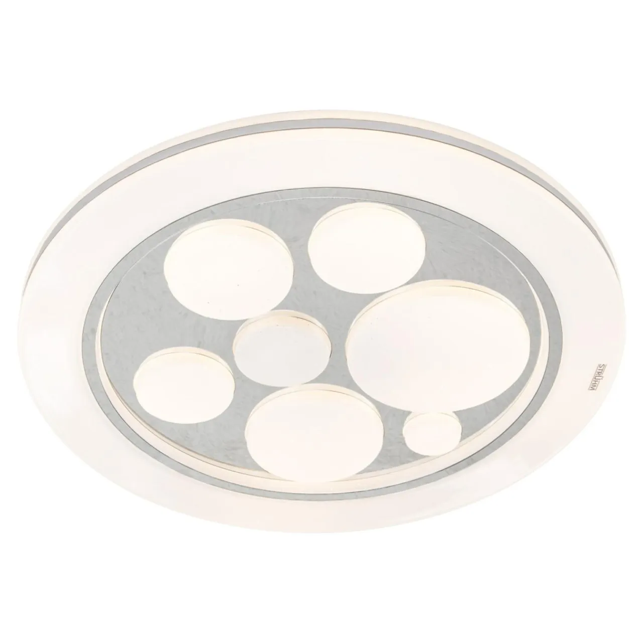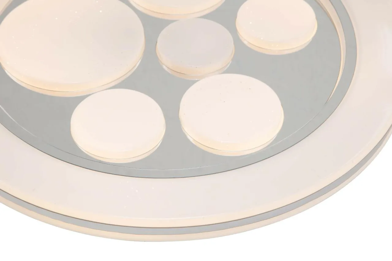 Plafon posiada średnicę 49 cm, w związku z tym można zamontować go w przestronnych wnętrzach. Idealnie nadaje się do tego, by ozdobić salon, jadalnię lub sypialnię, a dzięki podwyższonej klasie szczelności (IP44) sprawdza się nawet łazience.