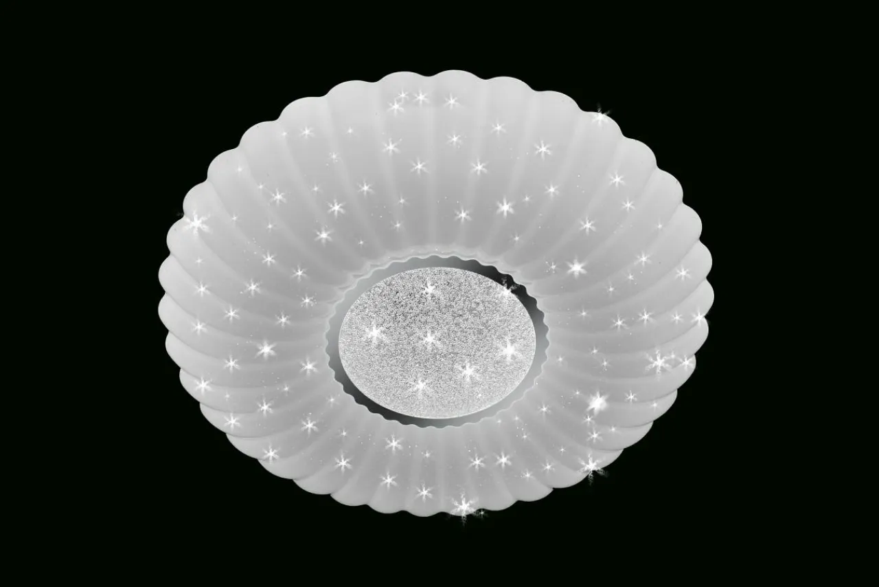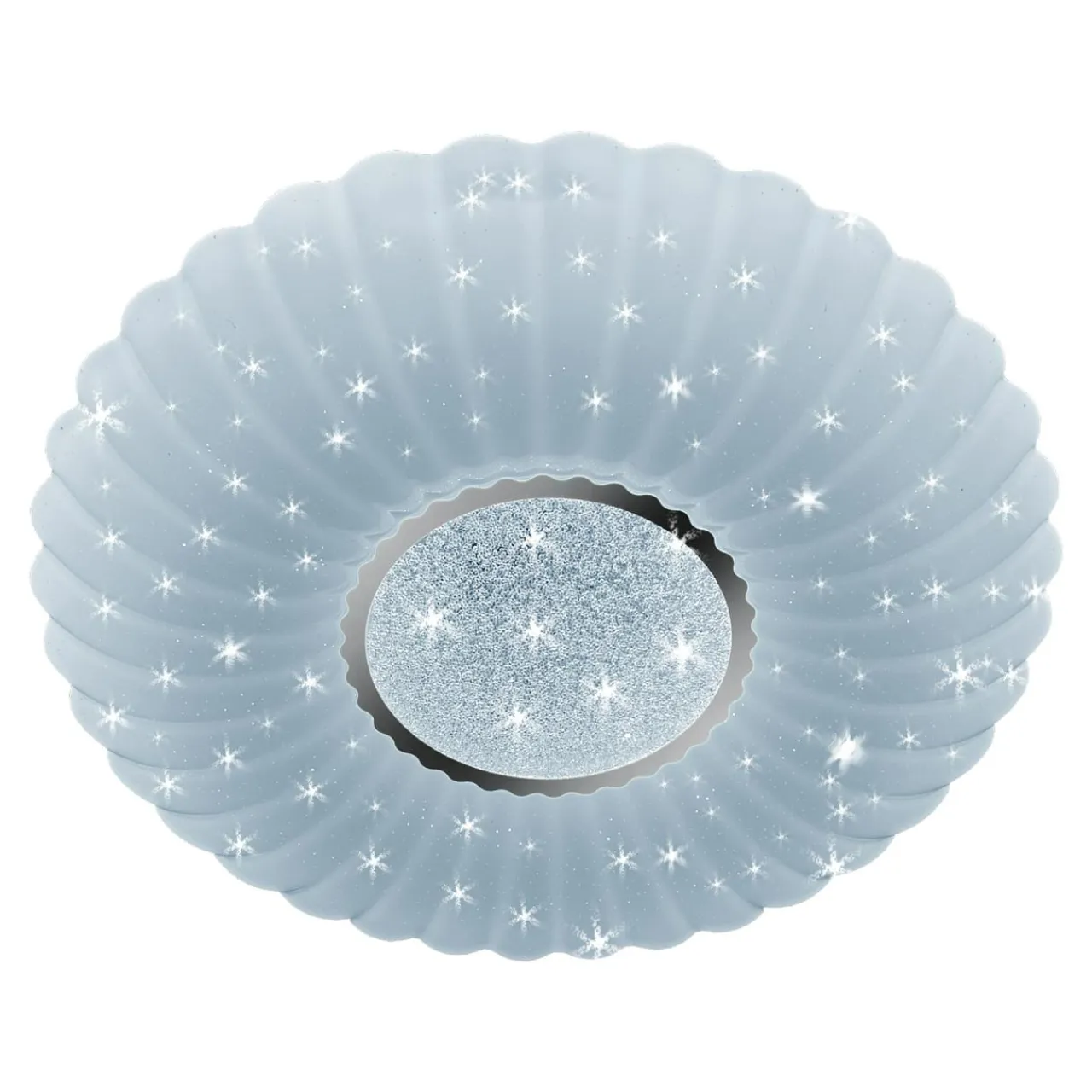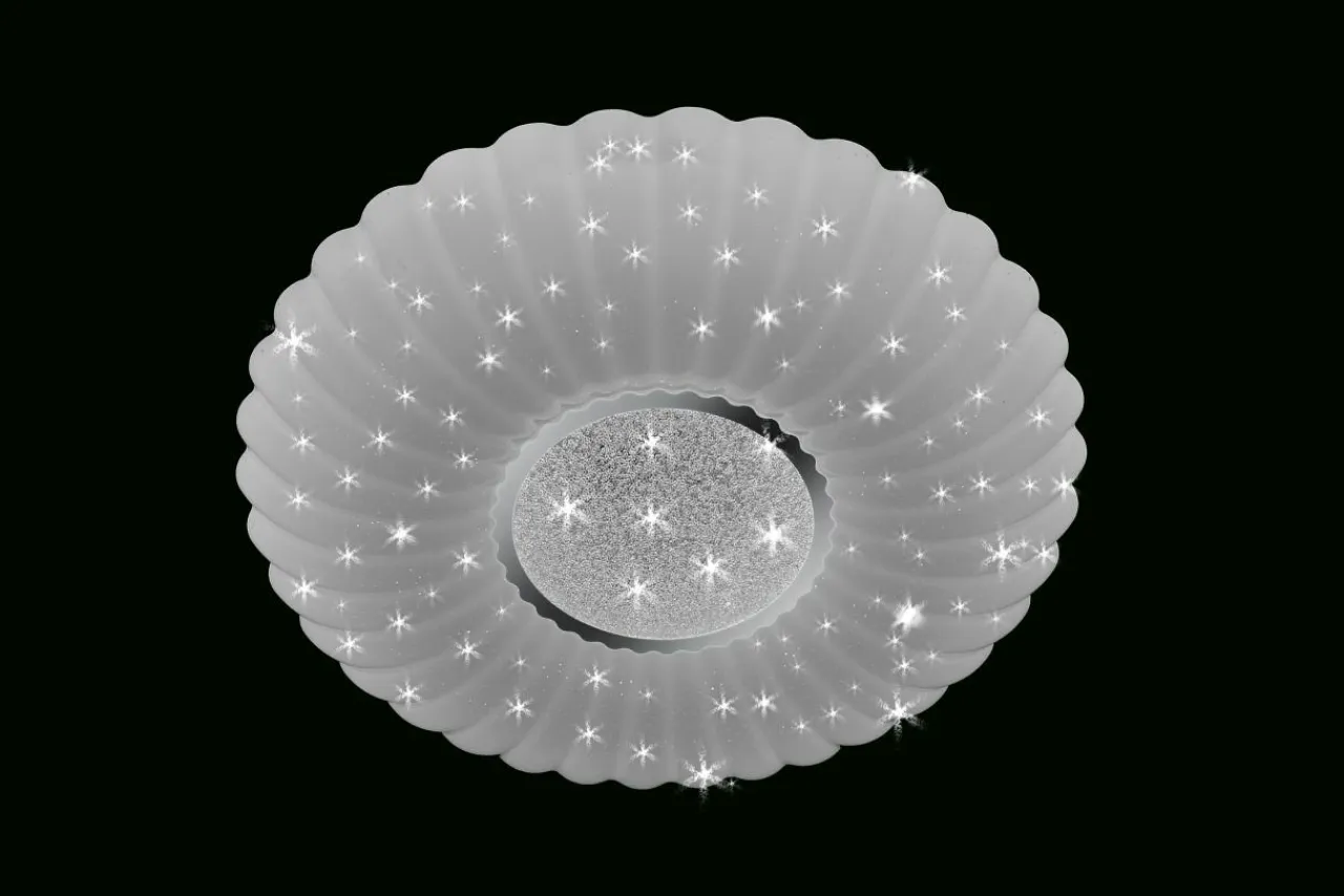 Klosz z tworzywa sztucznego posiada dekorację, która tworzy wrażenie rozgwieżdżonego nieba. Łagodne linie ułożone w regularny sposób z okrągłym centrum bardzo interesująco prezentują się zarówno przy zapalonym, jak i zgaszonym świetle.