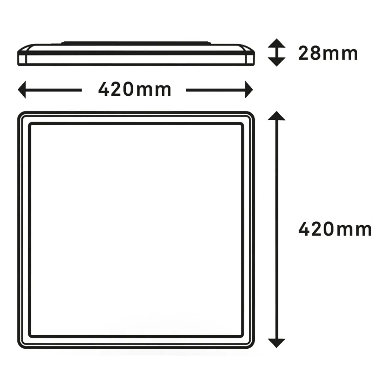 Podstawa na bazie kwadratu z czarnym obramowaniem jest cienka (ma jedynie 2,9 cm) i lekka, co pozwala zamontować lampę na podwieszanych sufitach.