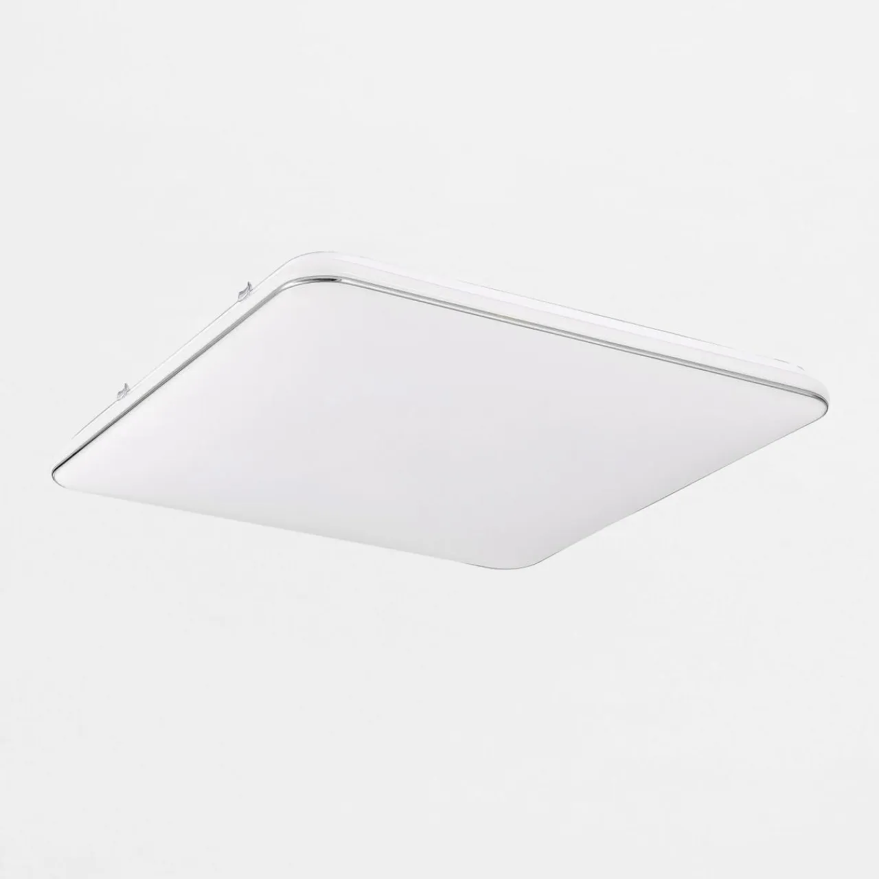 - Ozdobne, białe wykończenie z chromowanym dekorem doskonale równoważy prosty, funkcjonalny styl plafonu – jednocześnie pozwala dopasować lampą do specyfiki wnętrza w nowoczesnym stylu.