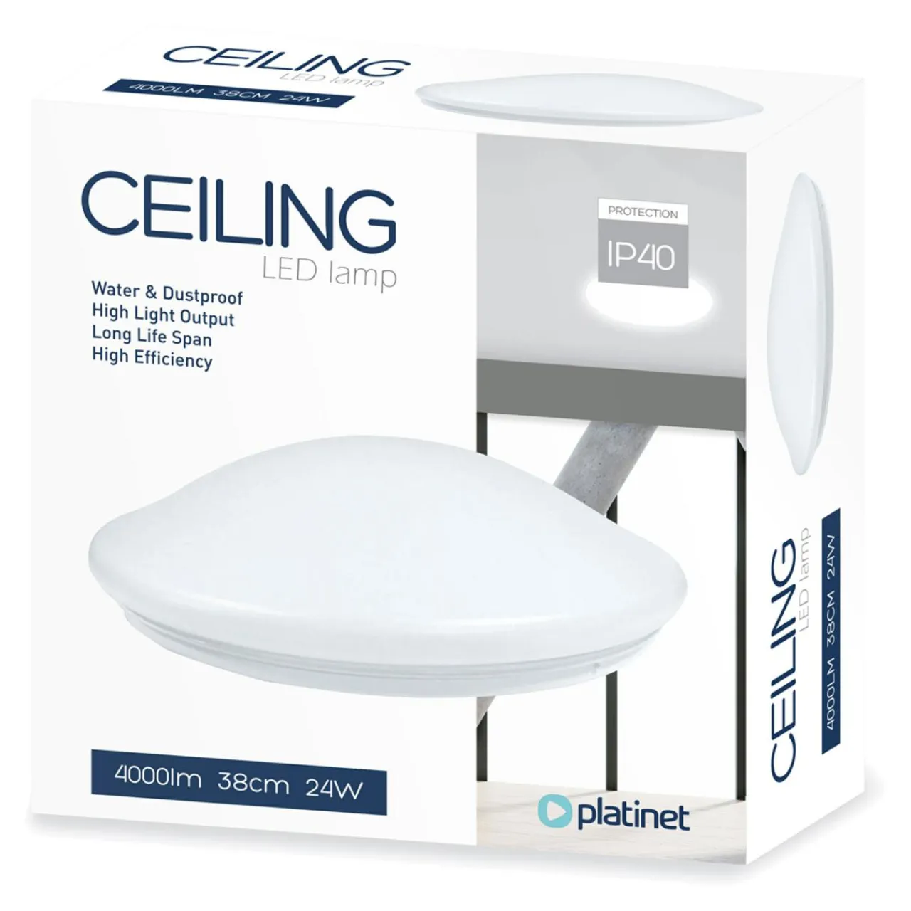 Wbudowany w oprawę plafonu moduł LED o mocy 24W emituje światło o naturalnej barwie 4000K i strumieniu świetlnym 100 lumenów.