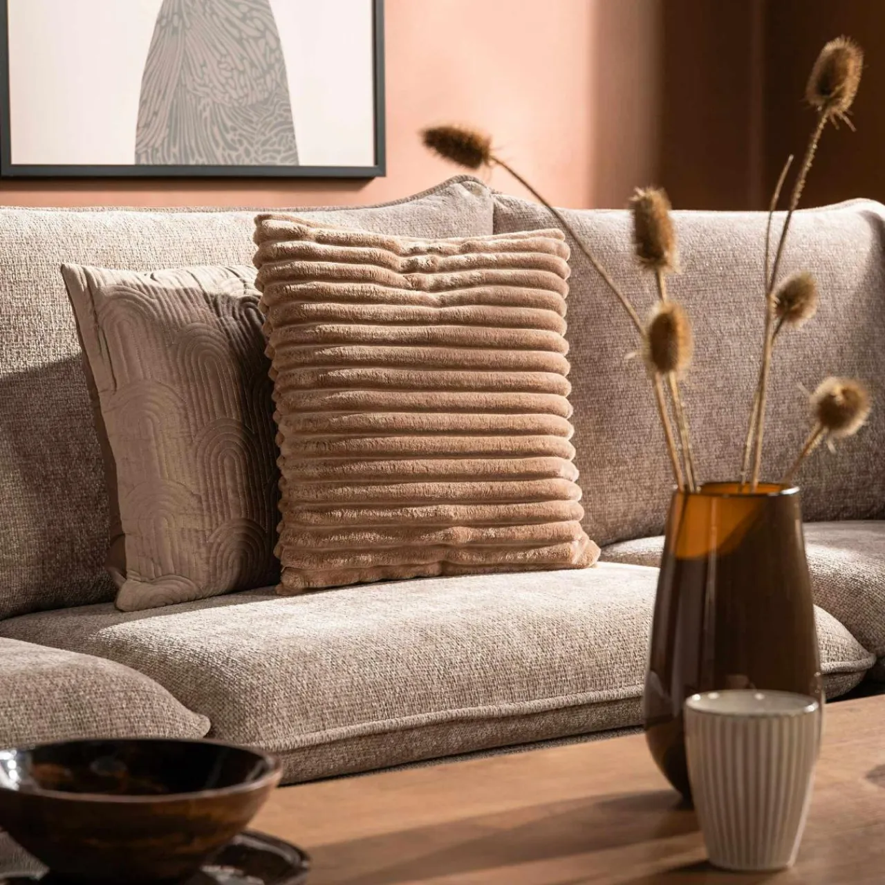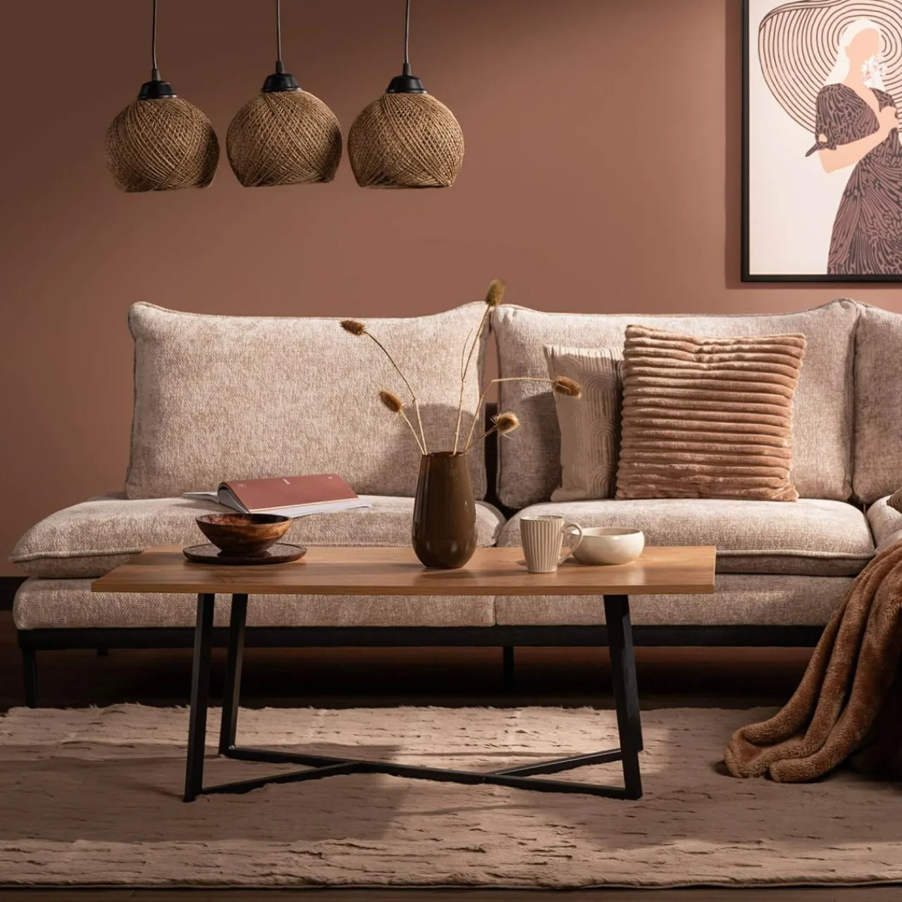 Beż dopasujesz do ceglastej kanapy, brązowych ścian, uniwersalnej szarości lub bieli – zyskasz więcej światła i ożywisz pomieszczenie.