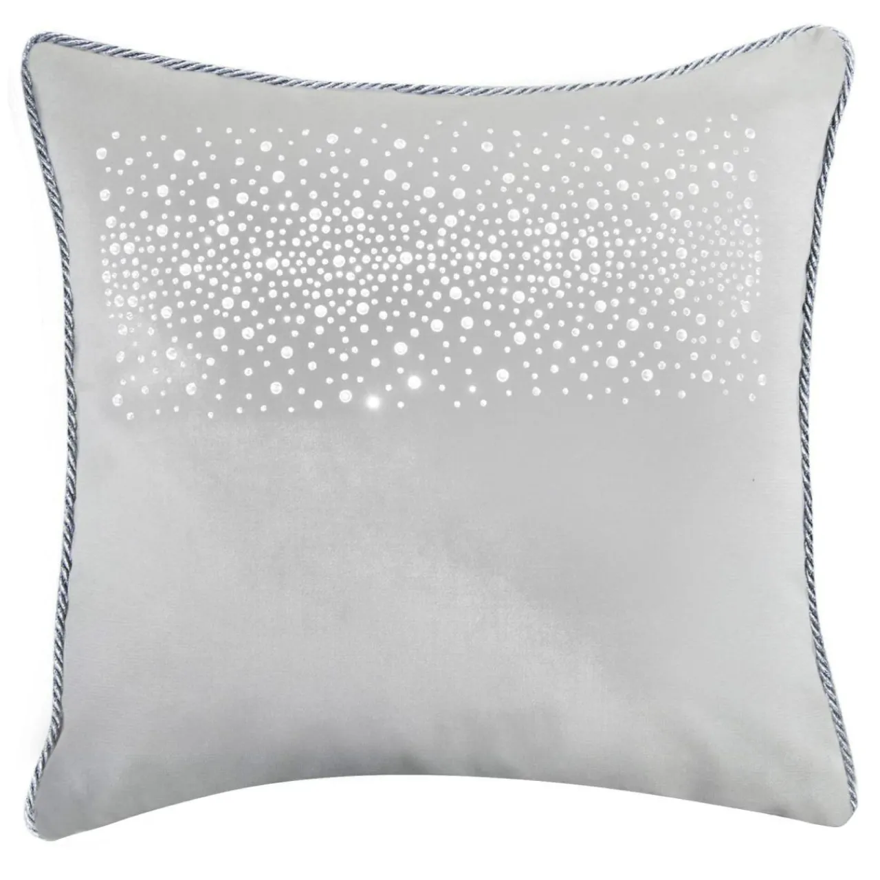 - Poduszka jest z trzech stron starannie obszyta srebrnym, brokatowym sznurem dekoracyjnym o grubości 8 mm;