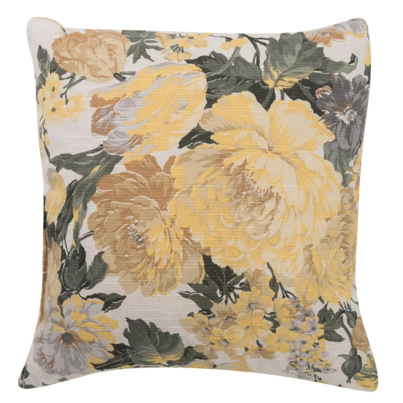Poduszka dekoracyjna BLOOM w ożywczym wiosennie żółtym kolorze jest bogato ozdobiona motywem kwiatów. Wniesie powiew świeżości w każde, także minimalistyczne wnętrze.