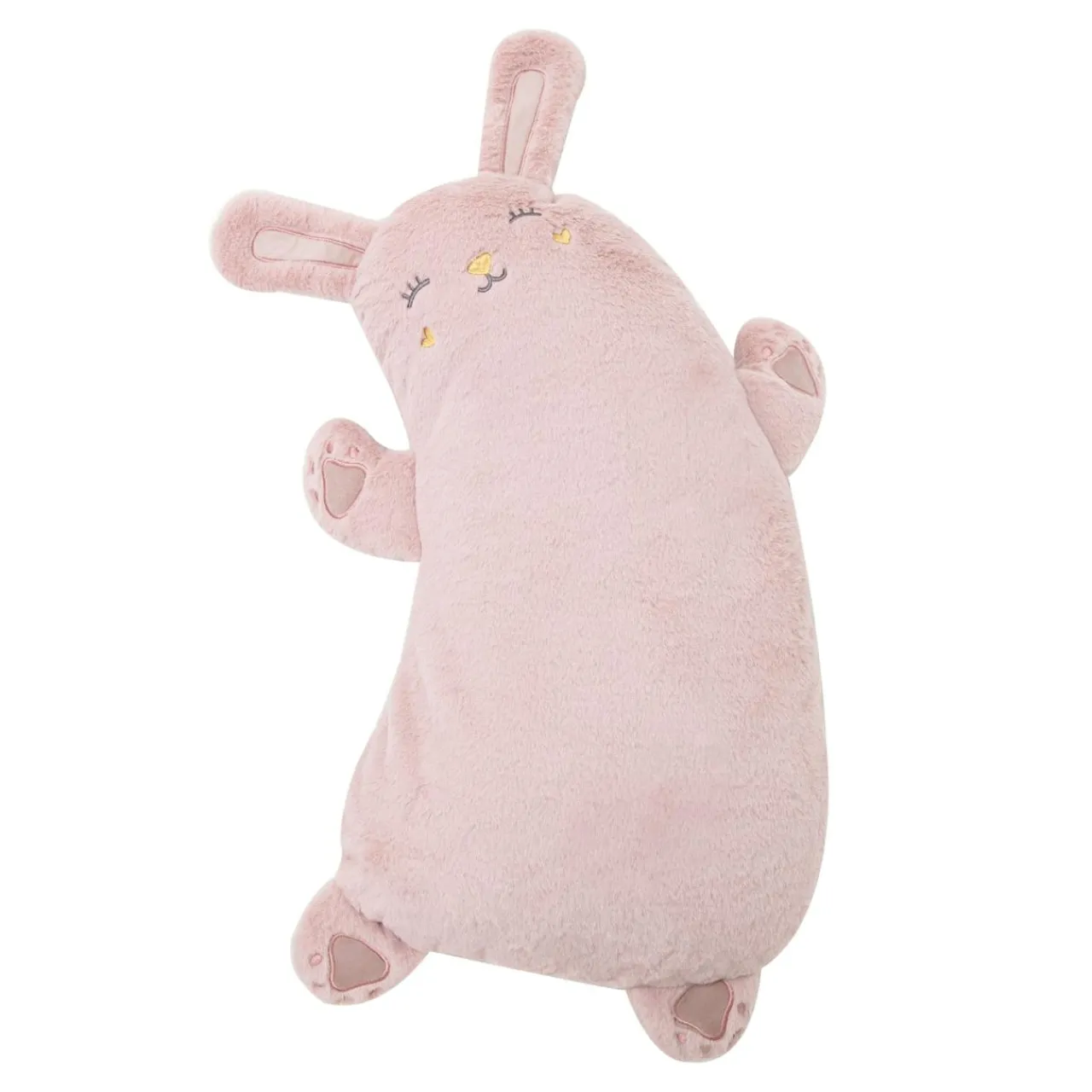 - Poduszka w kształcie śpiącego królika pozostanie przy dziecku na dłużej – trwały poliestrowy materiał ma większą odporność na ścieranie.