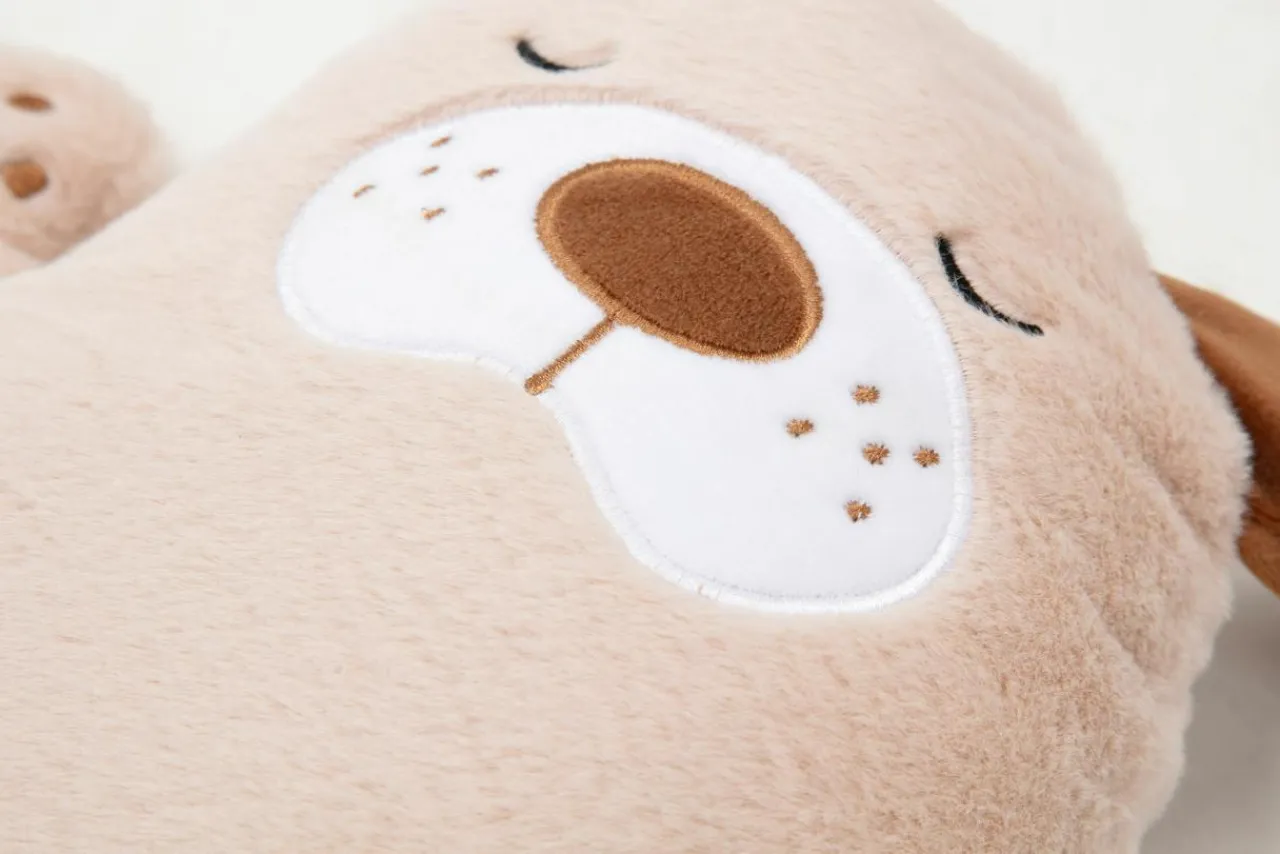 - Poduszka w kształcie śpiącego pieska pozostanie przy dziecku na dłużej – poliestrowy materiał jest trwały i ma większą odporność na ścieranie.
