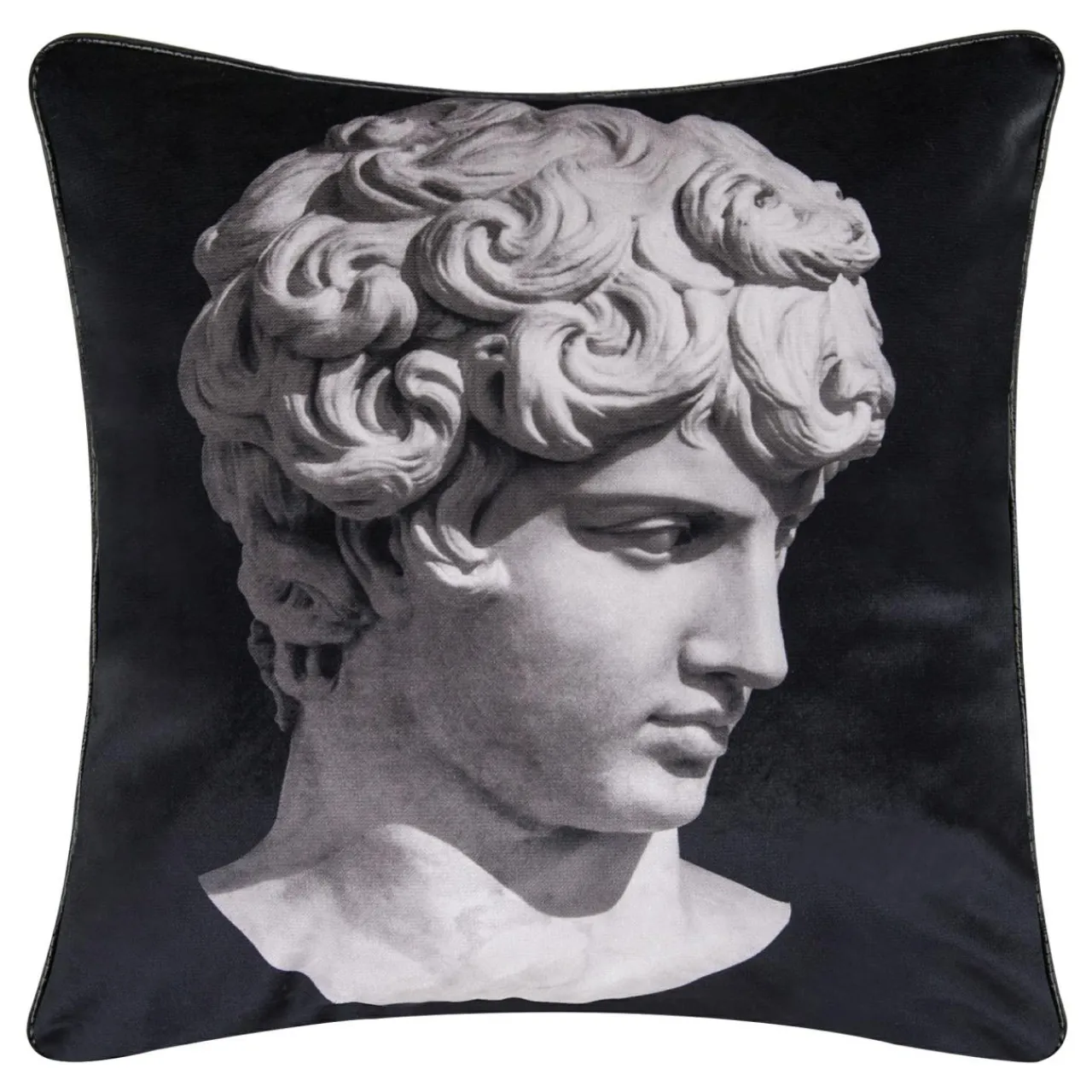 - Boska poduszka na przedniej stronie ma nadruk z głową greckiej rzeźby, tył natomiast ma kolor grafitowy i jest gładki.