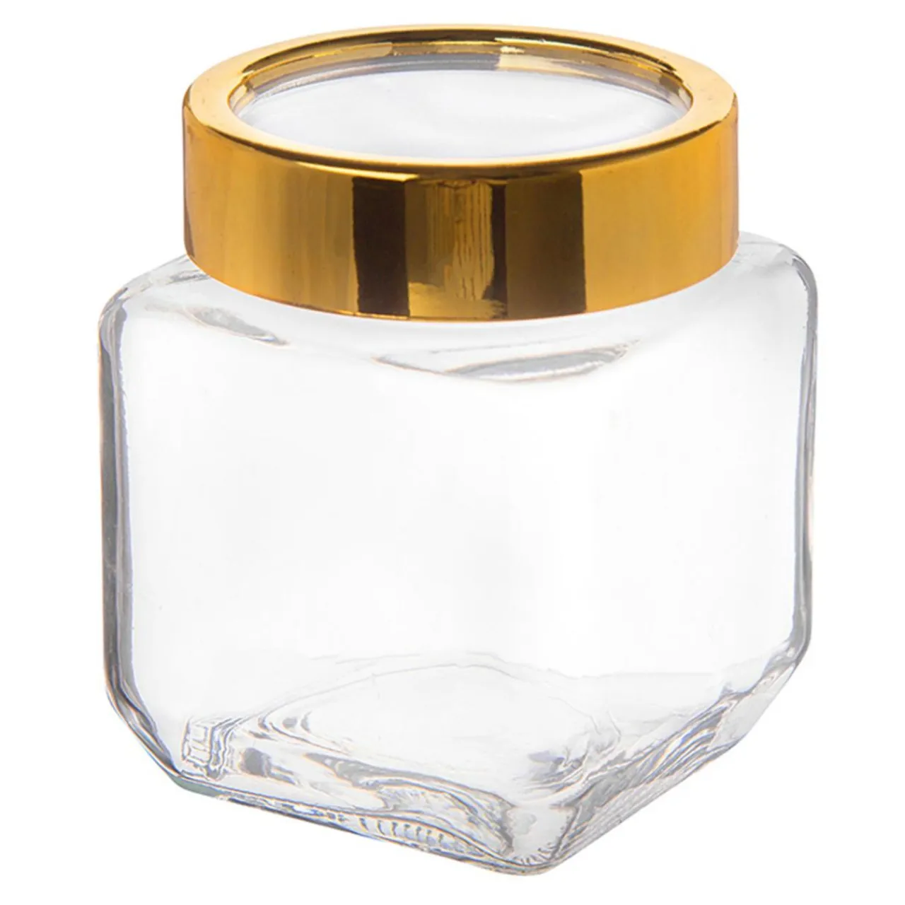 Pojemniki Na Żywność| Szkany pojemnik do żywności ze złotą pokrywką 500 ml