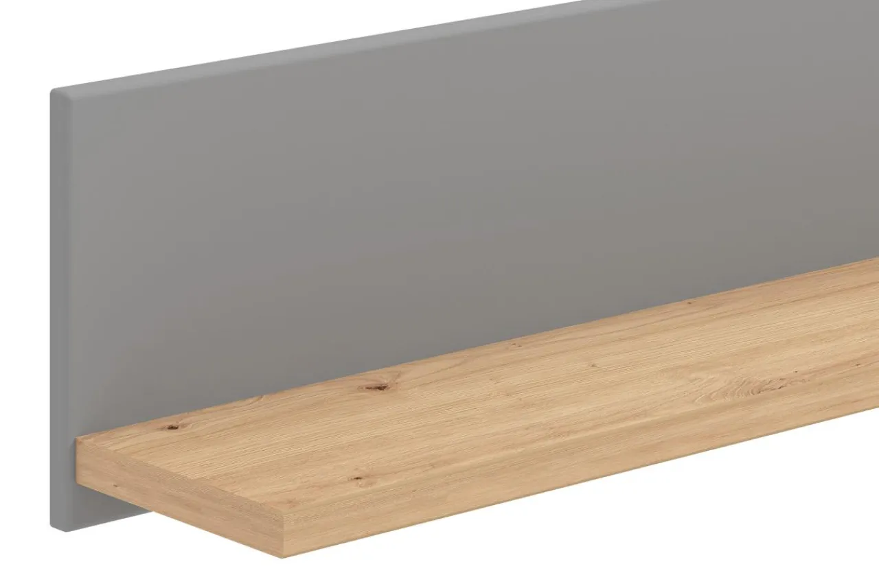 Połączenie szarego matu z kolorem dębu artisan sprawia, że półka świetnie wpasuje się we wnętrza o nowoczesnym charakterze.