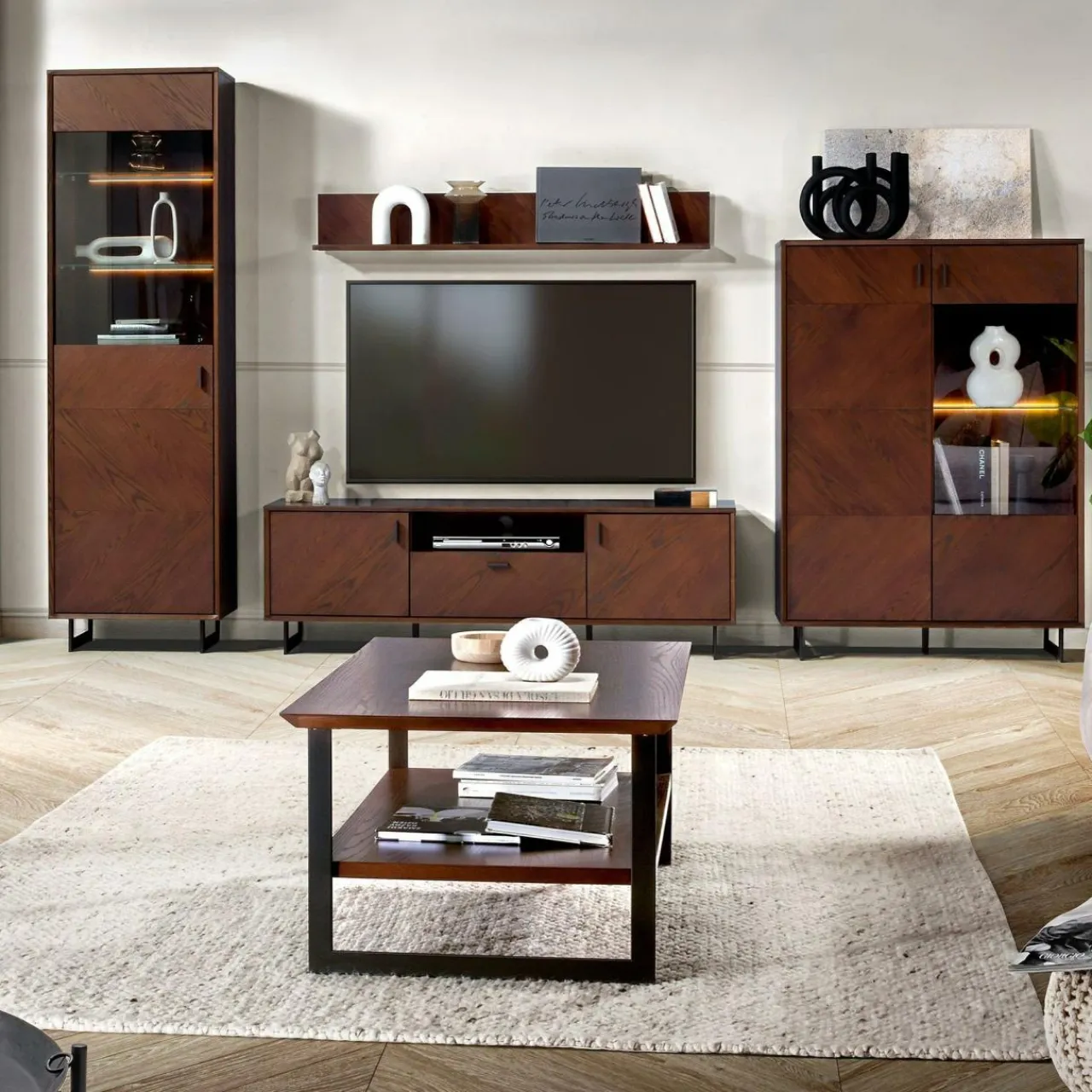 Półka VALLDEMOSSA to propozycja do nowoczesnego wnętrza. Wybarwienie w kolorze orzechowym łączy w sobie prostotę oraz dyskretną elegancję.
