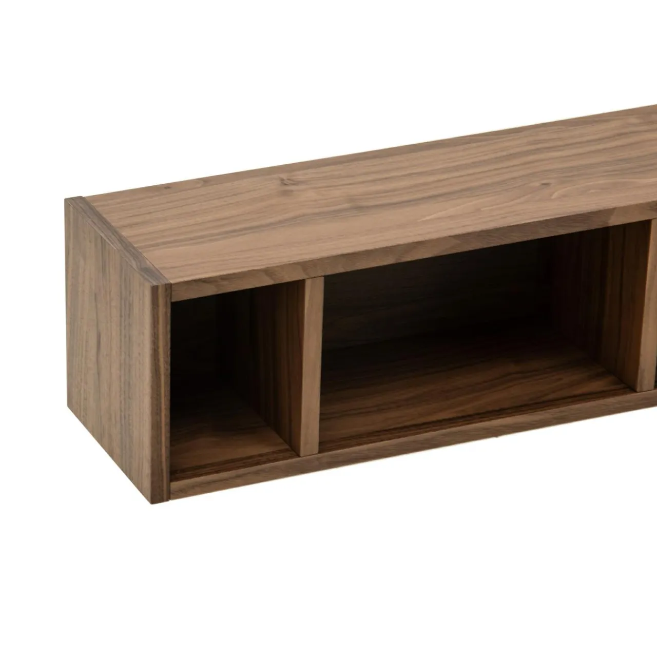 - Mebel wykonany z płyty MDF został wykończony orzechowym fornirem i pokryty lakierem UV.