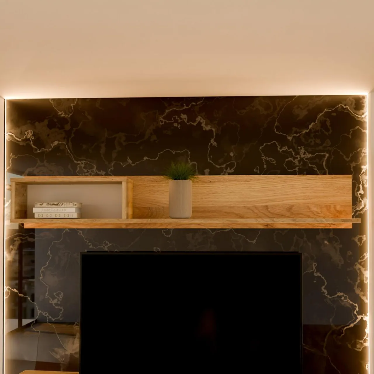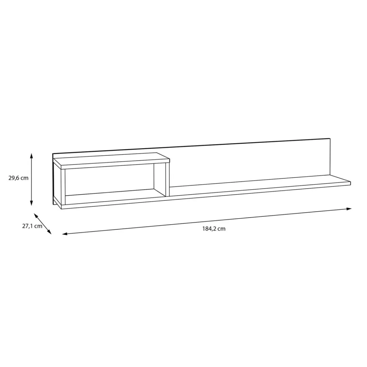 Stwórz spójną zabudowę ściany z półką wiszącą GALACTIQUE. Szeroka budowa idealnie sprawdzi się nad telewizorem i szafką RTV.