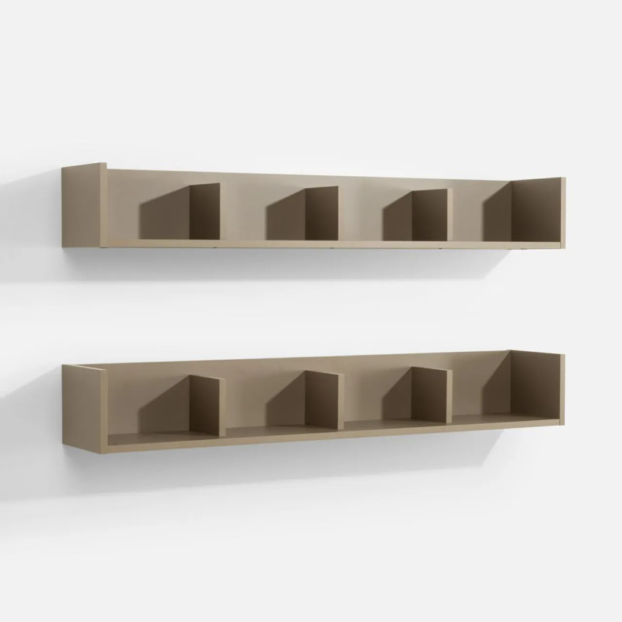 - Komplet 2 półek ściennych oferuje łącznie 8 wnęk na Twoje ulubione dekoracje i kolekcje.