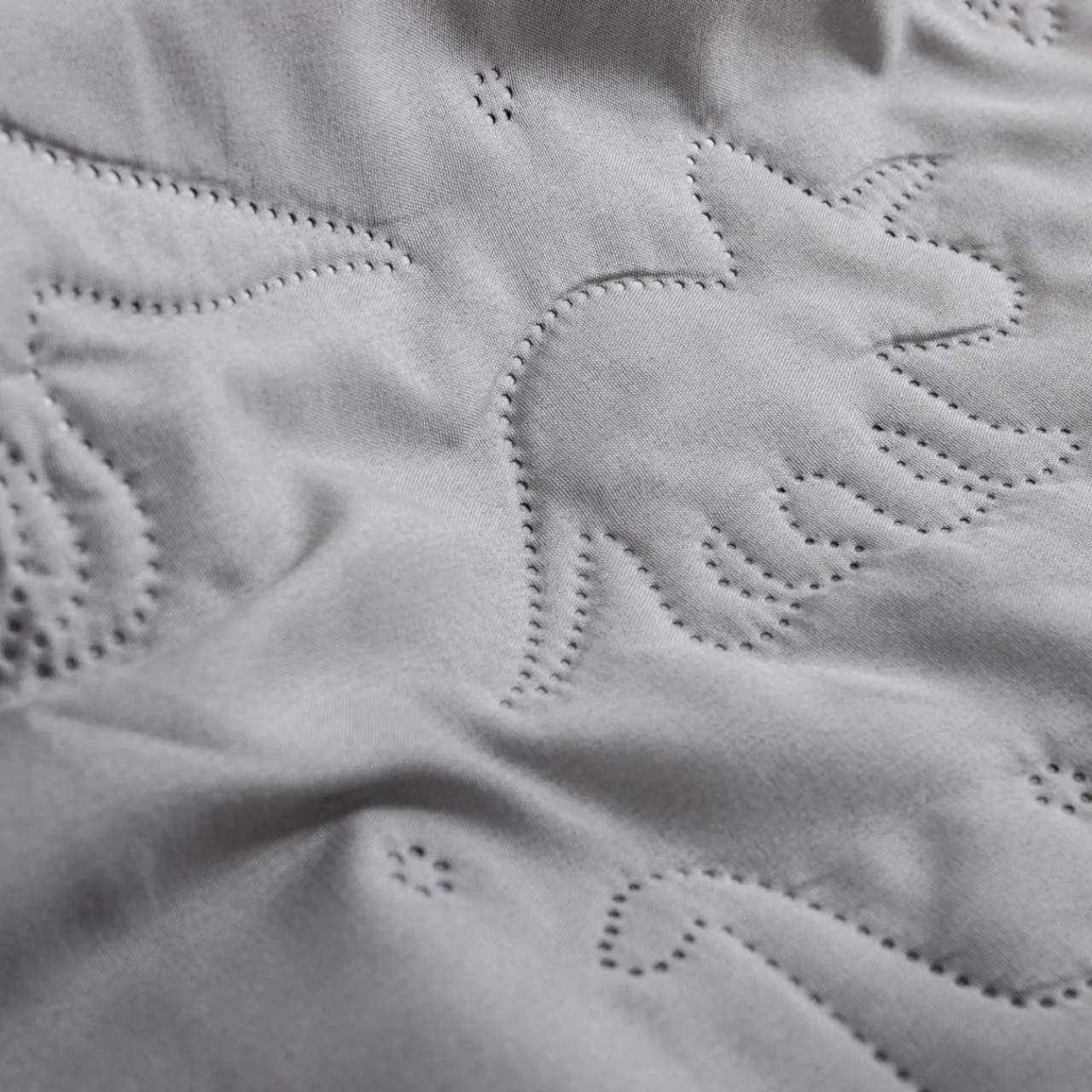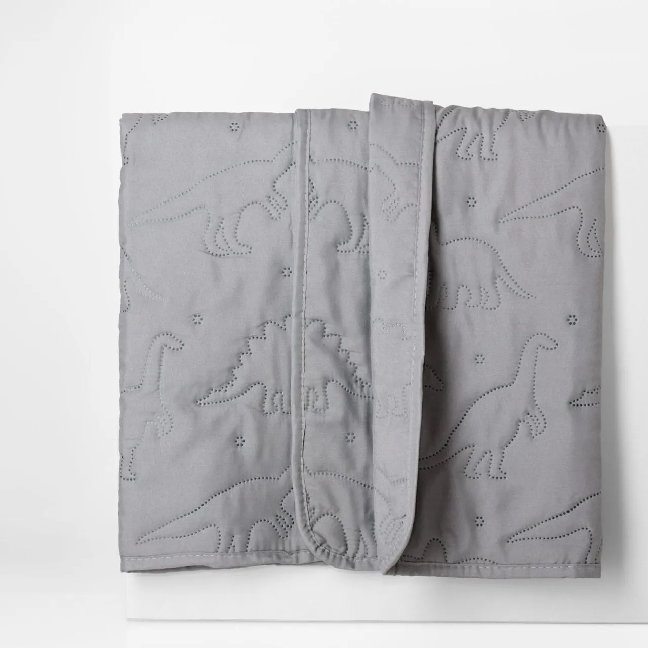 Jasnoszara narzuta na łóżko DABU przykuje uwagę wzorem w dinozaury. Dekoracja doda aranżacji przytulnego, pozytywnego akcentu.