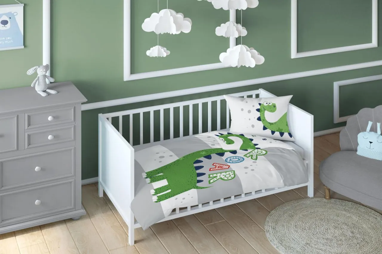- Mały użytkownik lub użytkowniczka pościeli doceni z pewnością motyw uroczego dinozaura, który zachęca do położenia się do łóżka, by śnić o wesołych przygodach w prehistorycznym świecie.