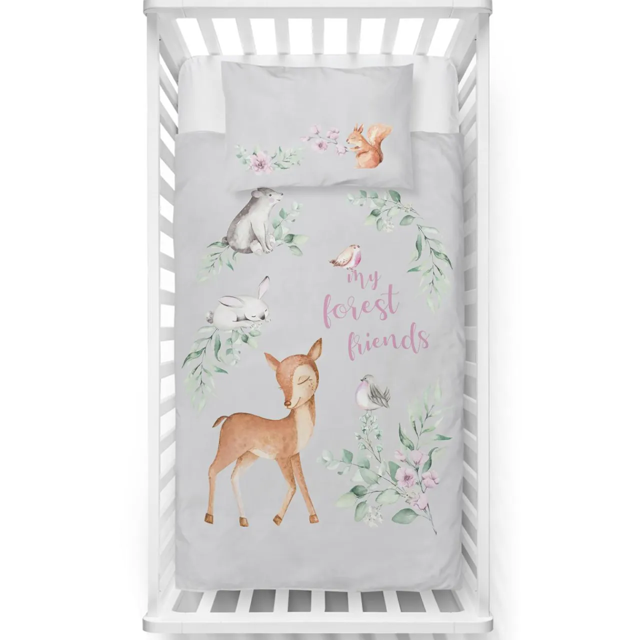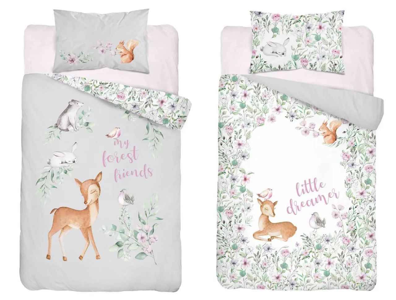 - Pościel posiada 2 nadruki, więc jeżeli chcesz wprowadzić do pokoju niemowlęcego trochę odmiany, wystarczy że po obrócisz ją na „drugą stronę”, by cieszyć oko nowym wzorem.