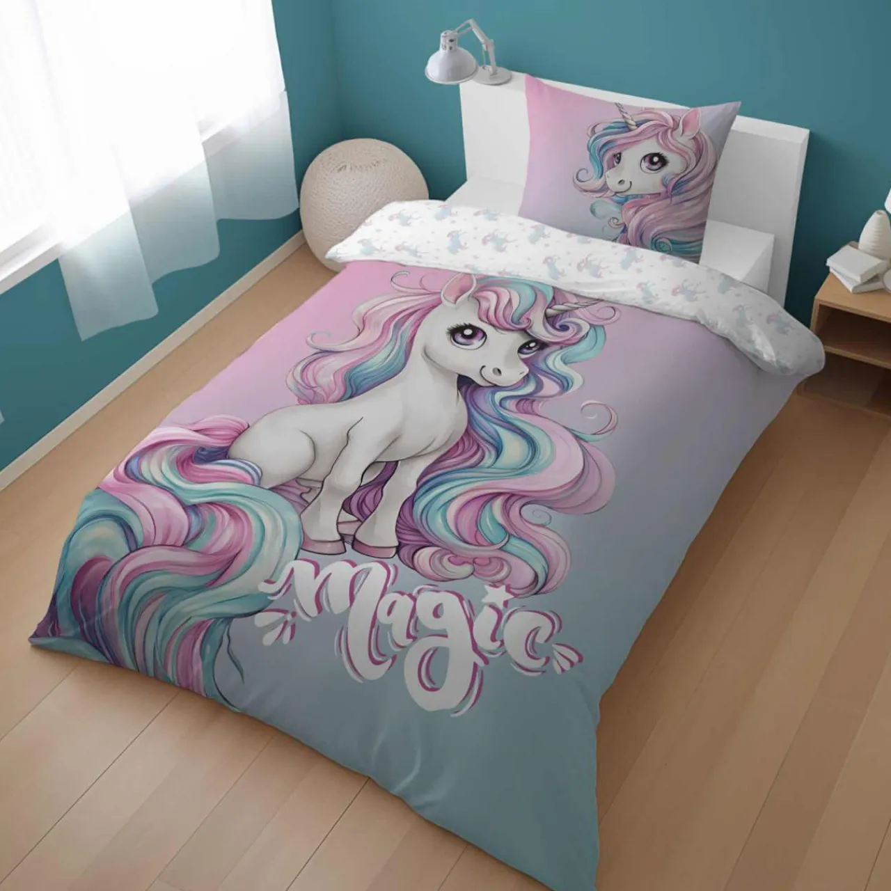 Młodzieżowy pokój nabierze indywidualnego charakteru dzięki dwustronnej pościeli JEDNOROŻEC.