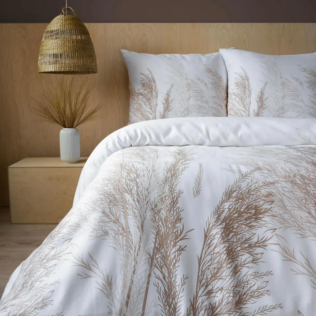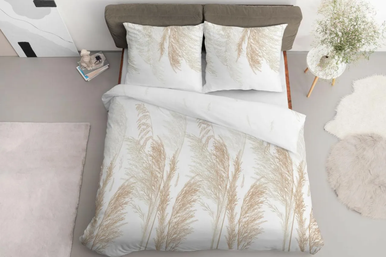Pościel z kolekcji HOME SATIN z motywem trawy pampasowej odnajdzie się w sypialni BOHO lub rustykalnej. Motyw inspirowany naturą wprowadza do pomieszczenia lekkość i przywodzi na myśl ciepłe,letnie dni