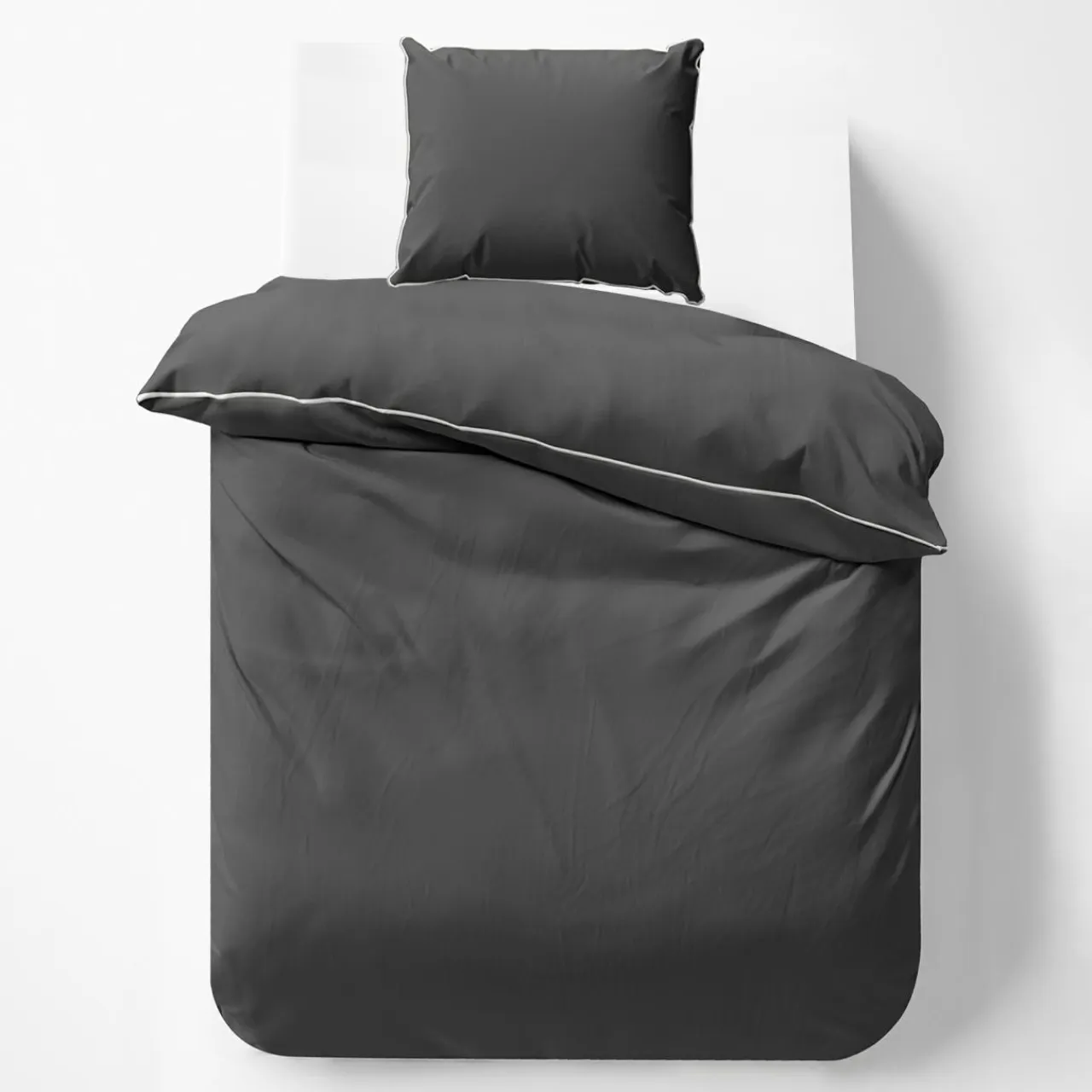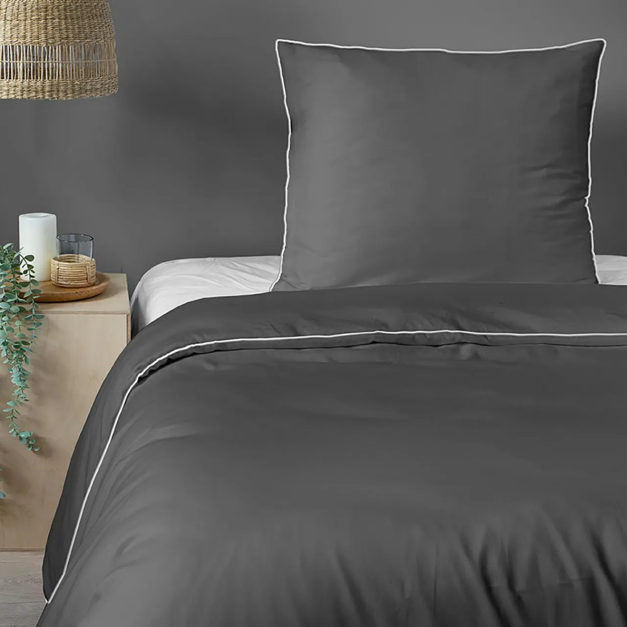 Bawełniana pościel ciemnoszary kolor – będzie pasować do kremowych i beżowych ścian. Nowoczesne wnętrze stanie się interesujące.