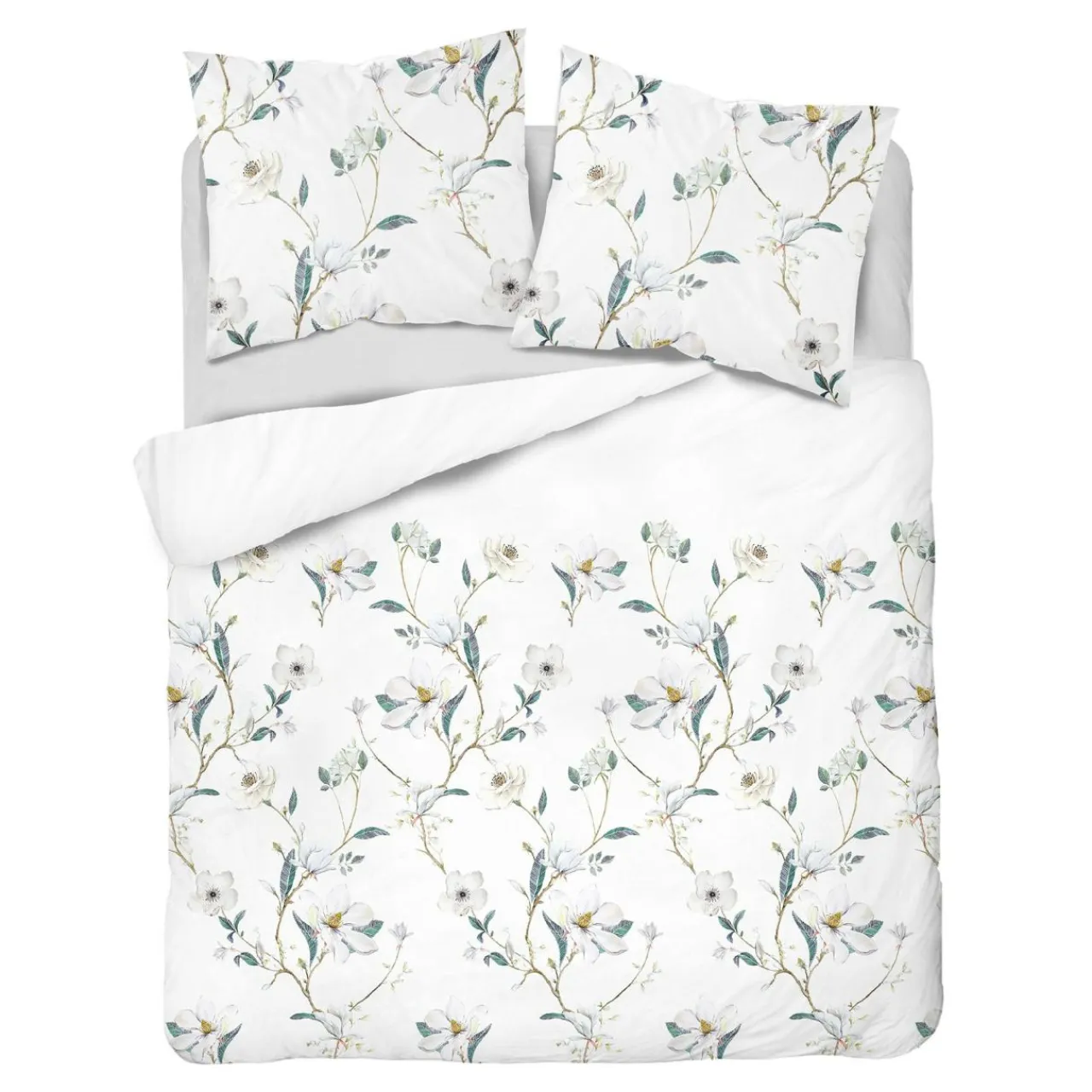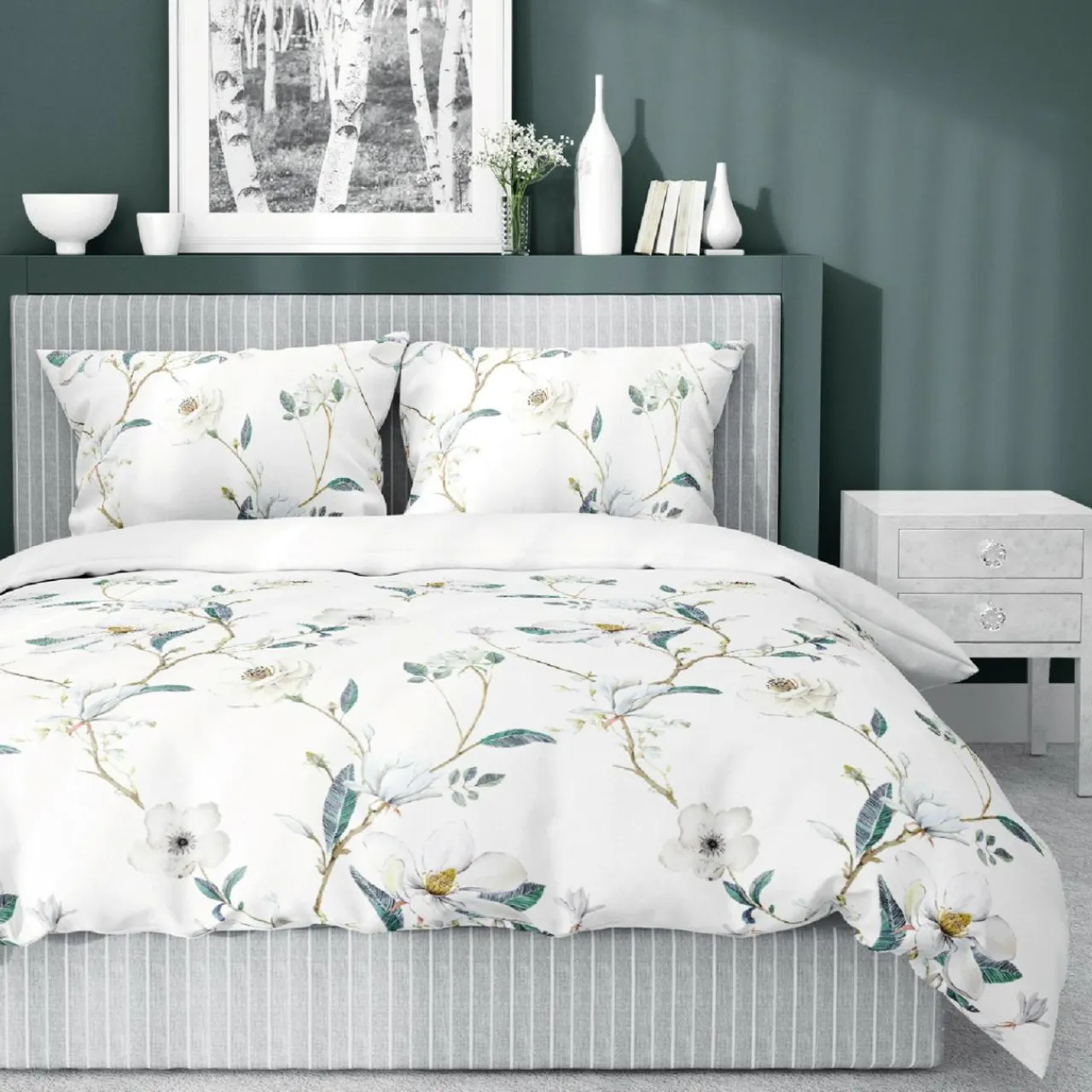 Pościel z kolekcji HOME SATIN z motywem kwiatów magnolii wprowadza do wnętrza romantyczny i przytulny nastrój. Odnajdzie się w sypialni urządzonej w romantycznym, delikatnym stylu, jak również stworzy ciekawe połączenie z dodatkami w kolorze butelkowej zieleni.