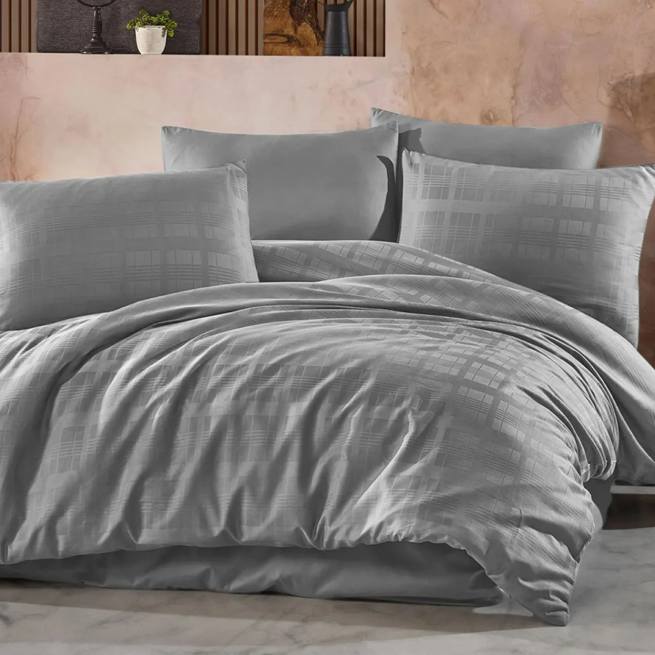 Gładki oraz przyjemny materiał otuli do snu, a szary kolor będzie się pięknie prezentował w nowoczesnej sypialni w towarzystwie bieli, czerni, różu lub brązu.