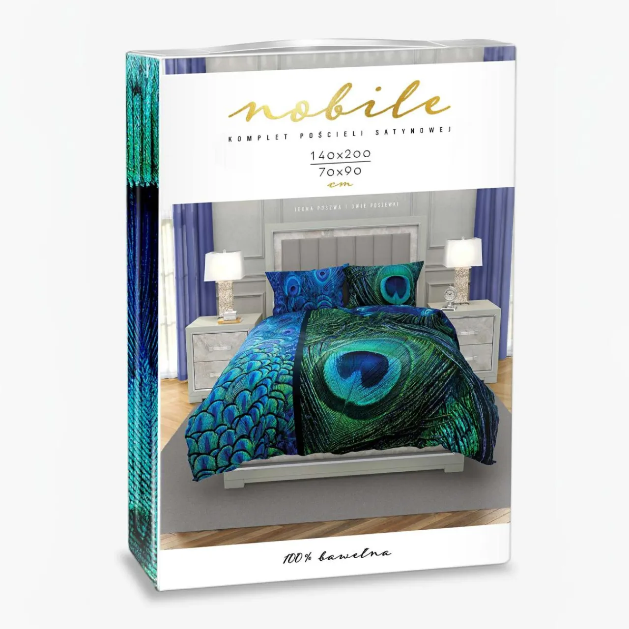 Kobaltowo-zielona pościel z kolekcji NOBILE będzie doskonałym uzupełnieniem sypialni bazującej na naturalnych motywach i wzorach oraz jasnych barwach ziemi.