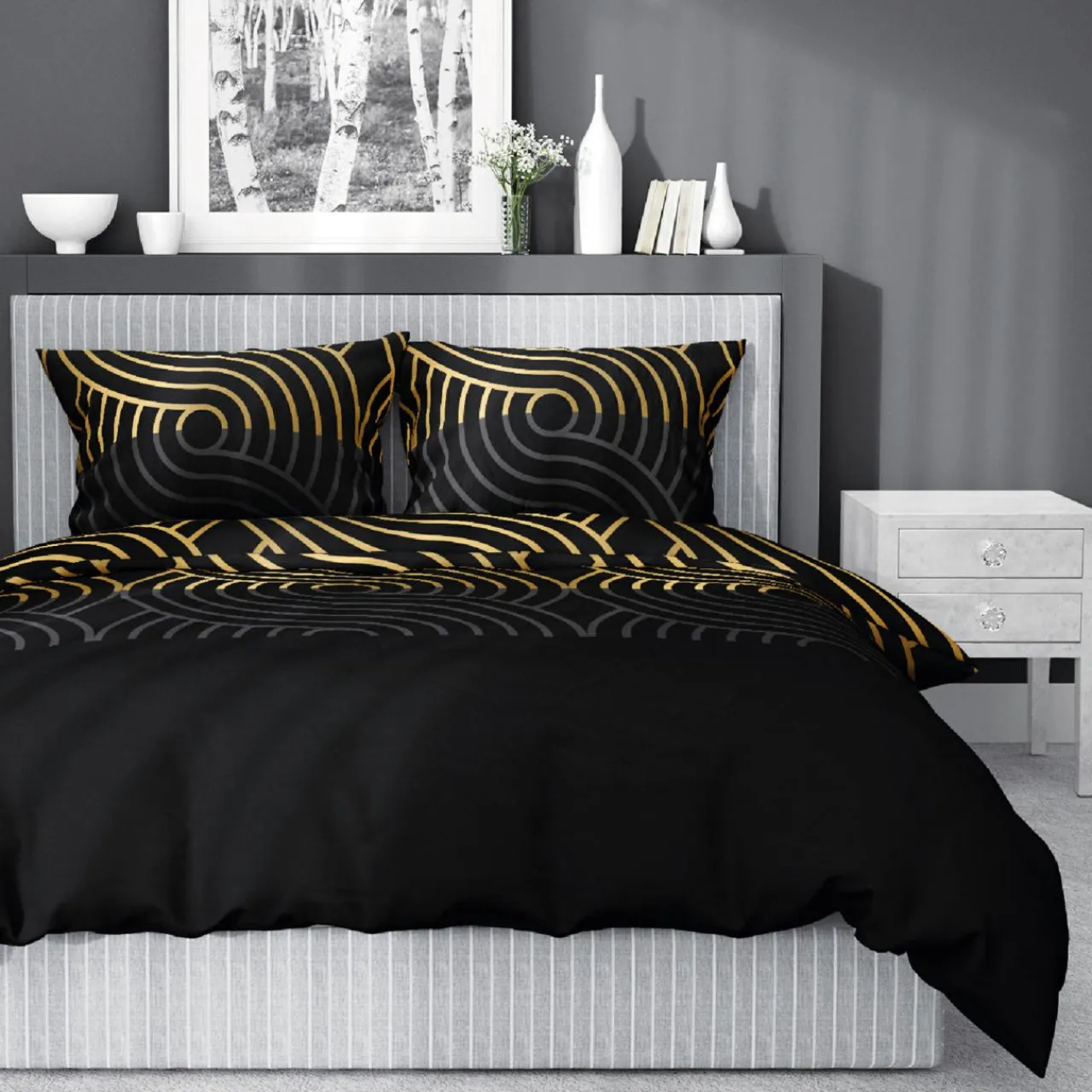 Pościel HOME SATIN jest uszyta z naturalnej bawełny. Ma czarny kolor oraz geometryczny wzór – Twoja sypialnia zyska więcej głębi i charakteru.