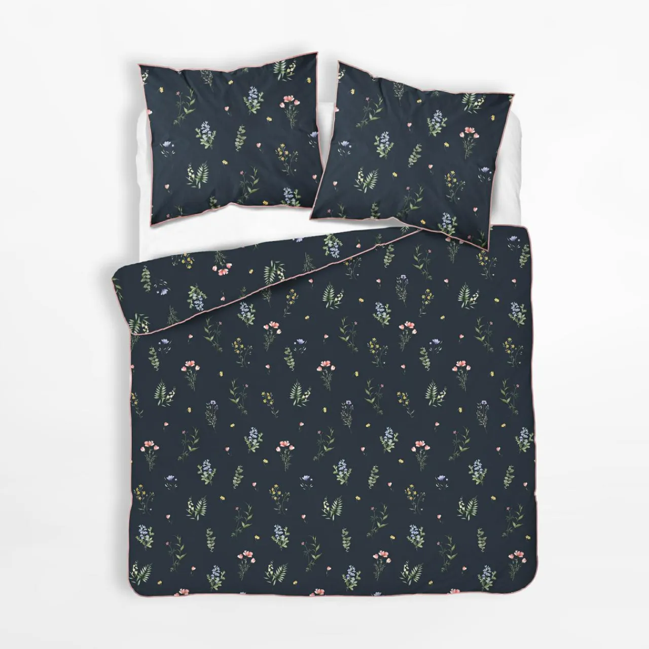 - Pościel została wykonana z perkalu – bawełny o gęstym splocie, który zwiększa wytrzymałość tkaniny i nadaje jej przyjemnie gładką fakturę.