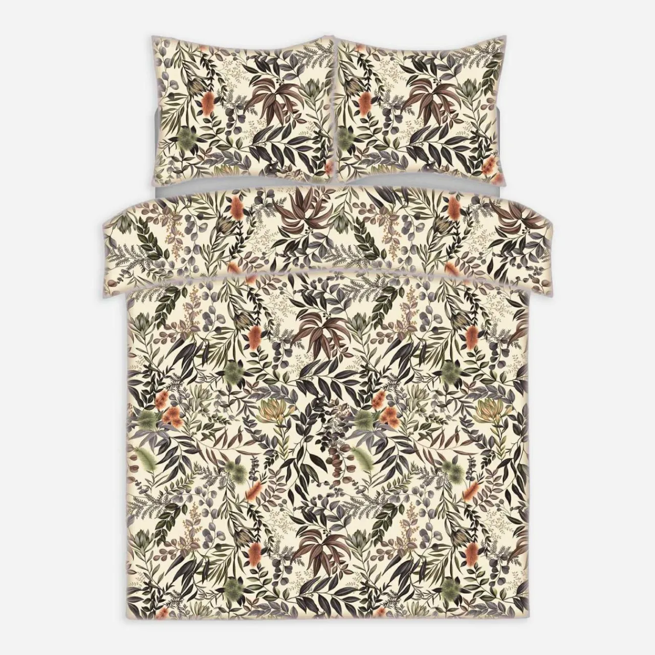Komplet pościeli z motywem roślinnym z kolekcji LINETTE to propozycja dla miłośników stylu urban jungle z nutką romantyzmu.