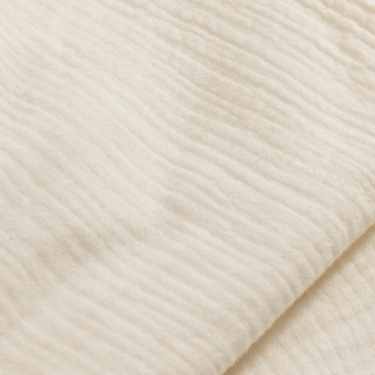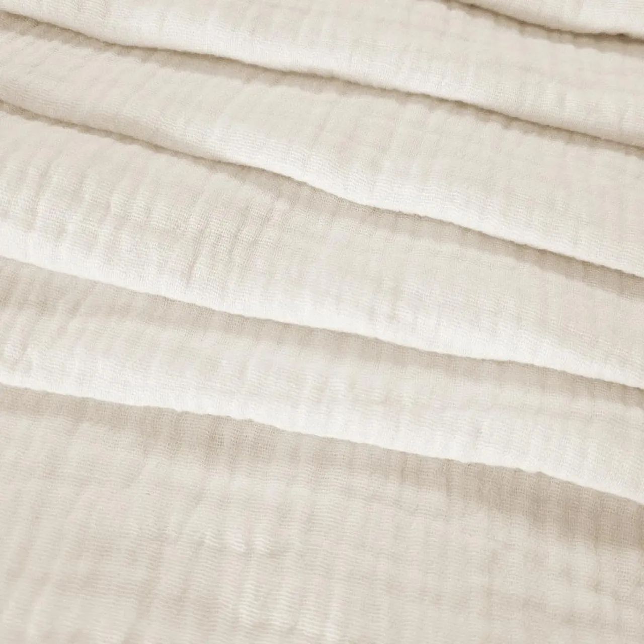 Jasnobeżowa pościel muślinowa wpisze się w nowoczesne wnętrze.