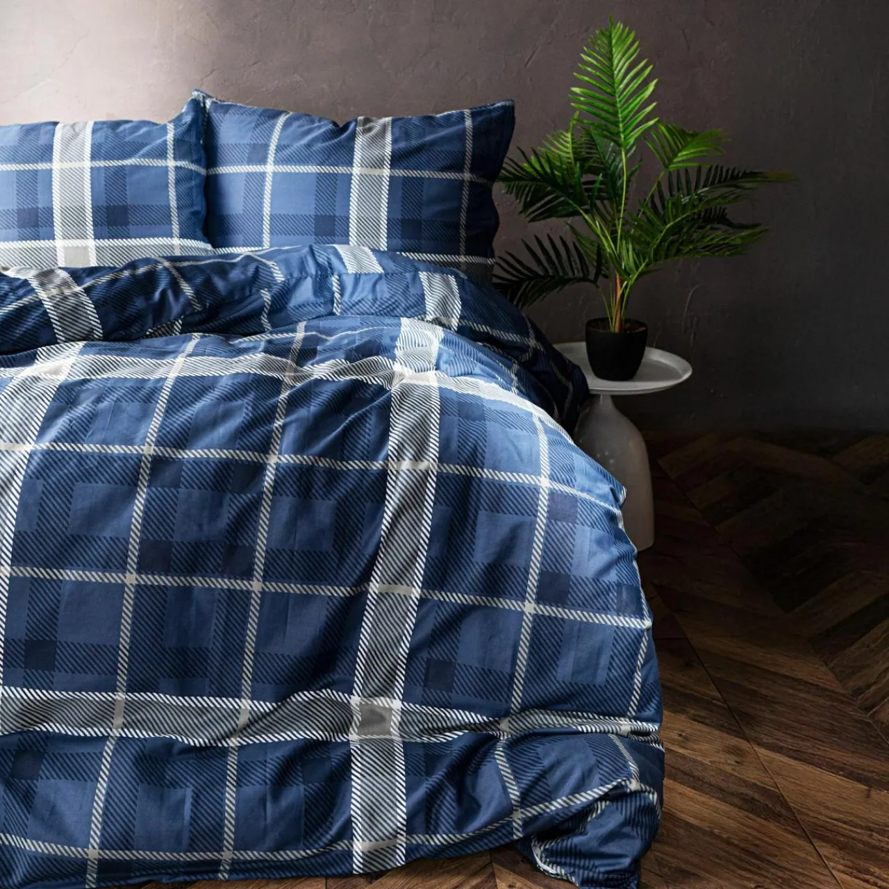 Kolekcja KADENA to propozycja dla miłośników klasycznych wzorów, które nigdy nie wychodzą z mody – granatowa pościel w kratę wizualnie odświeży i ociepli Twoją sypialnię.