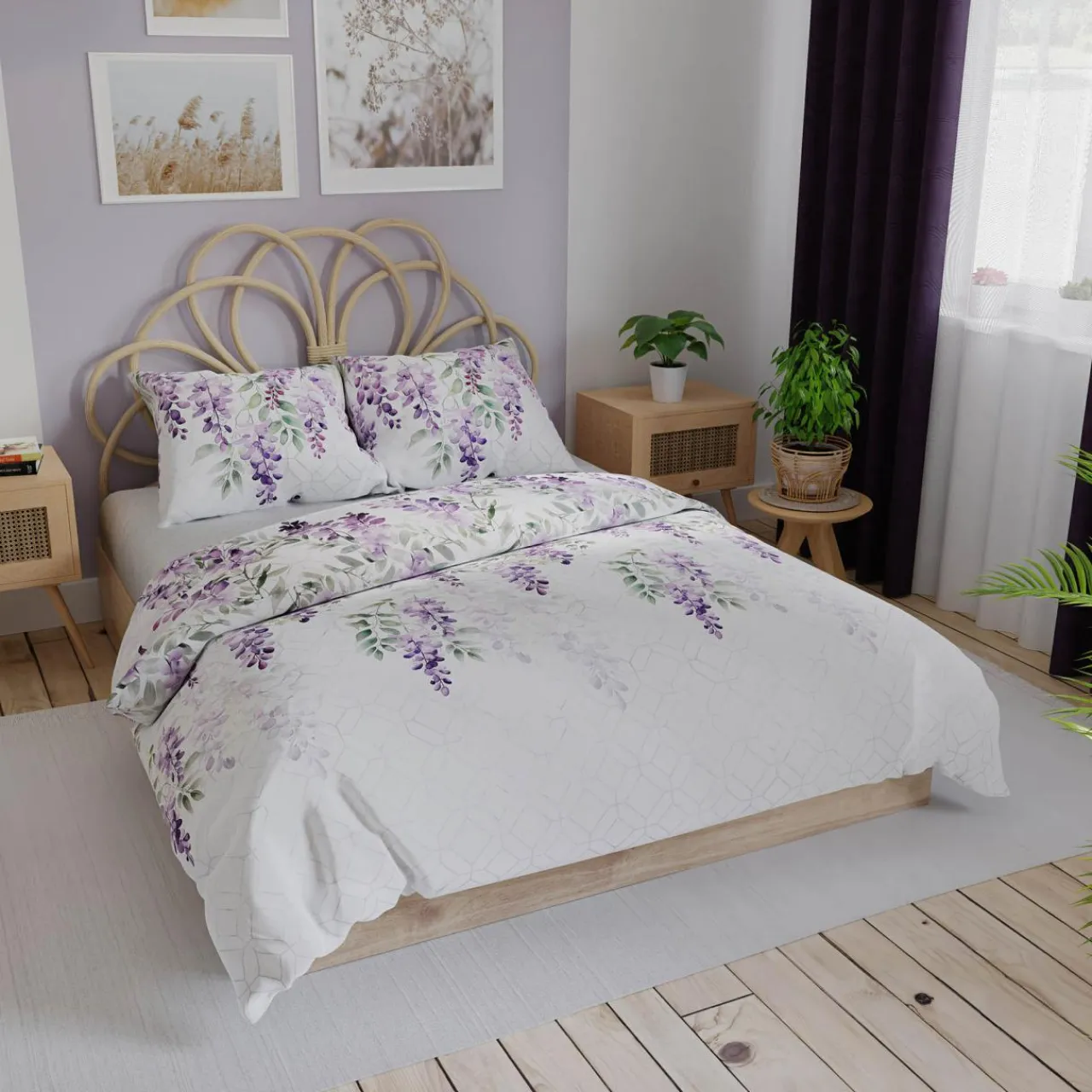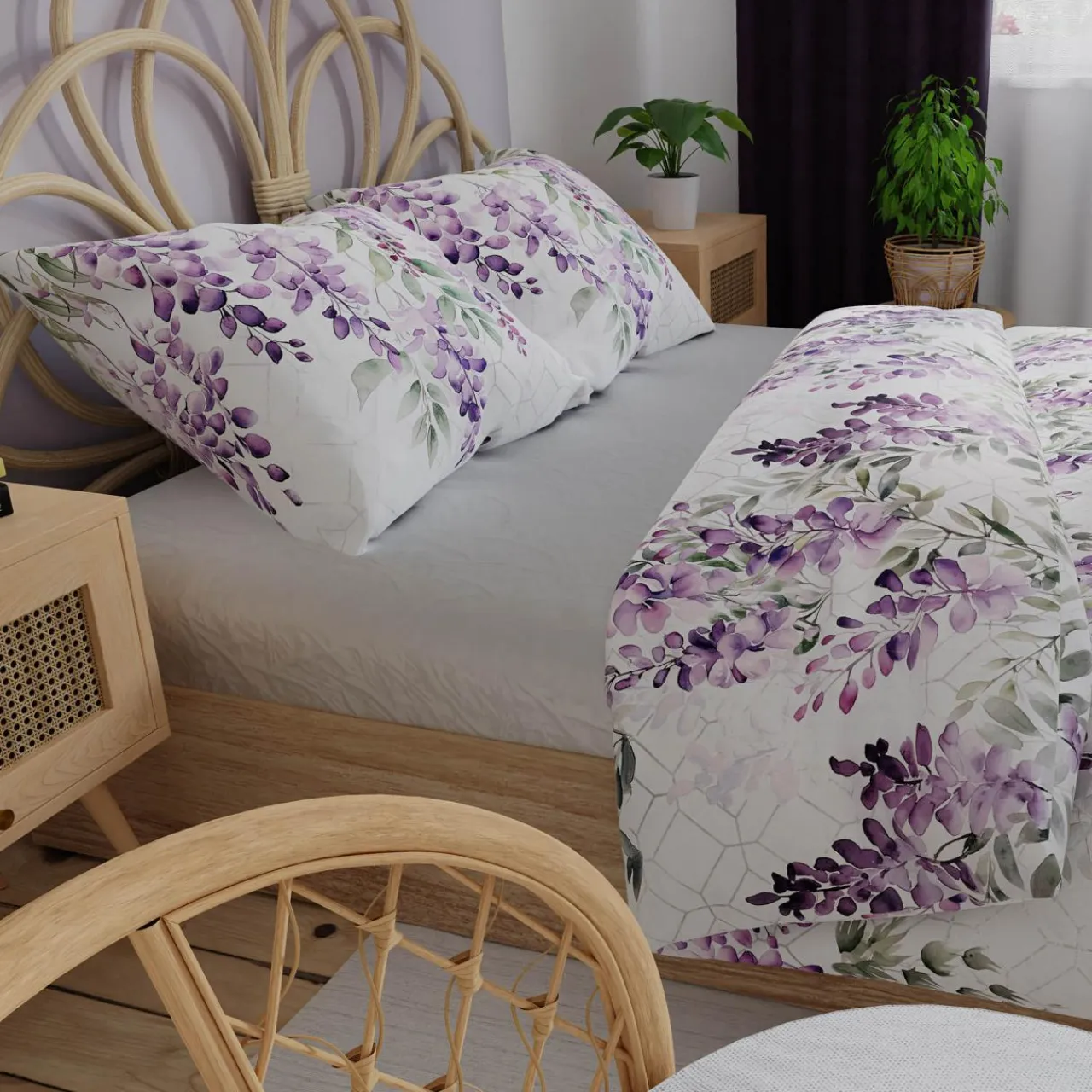 Bawełniana pościel o satynowym splocie LAVANYA pasuje do sypialni w stylu prowansalskim oraz romantycznym.
