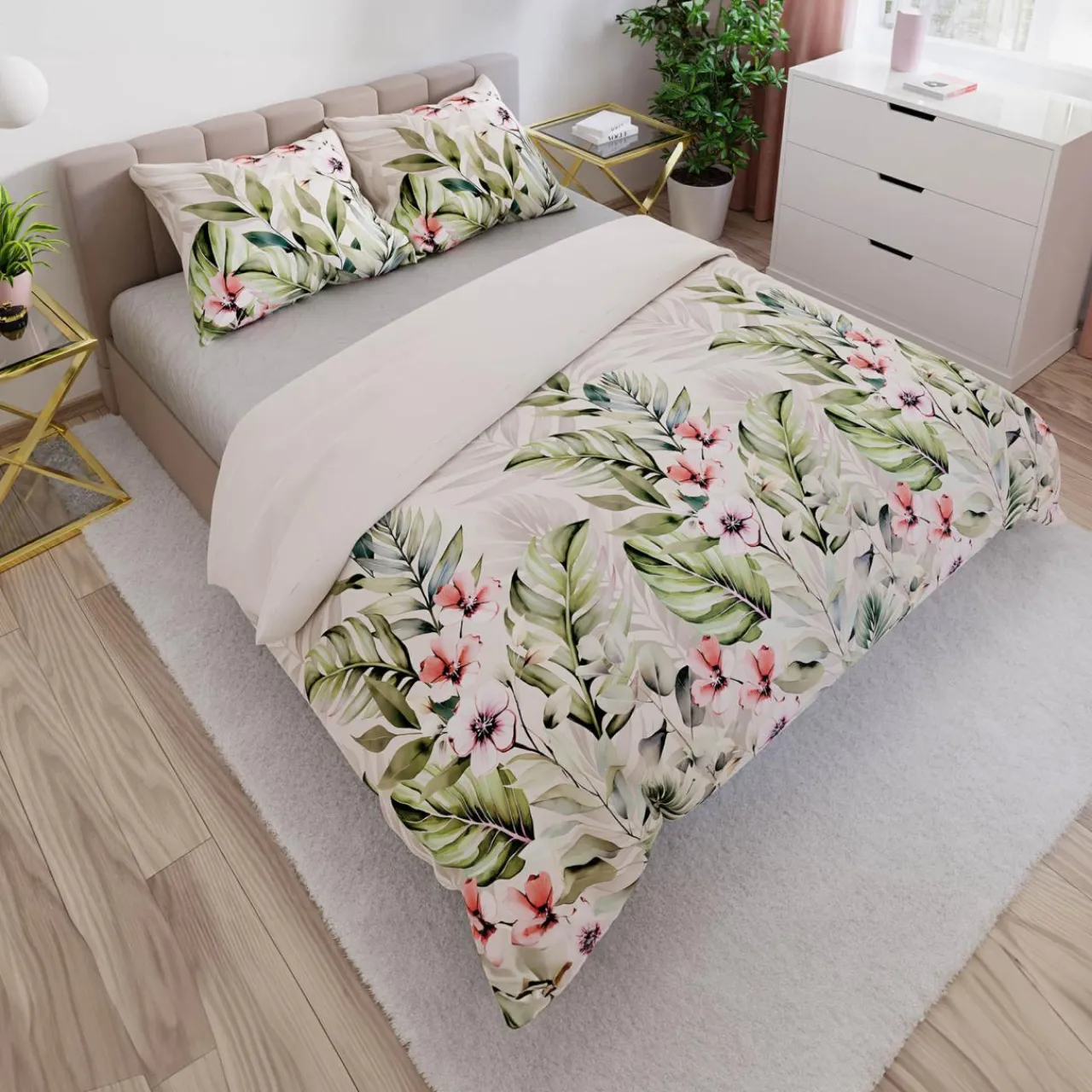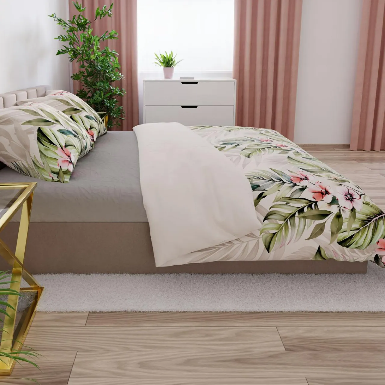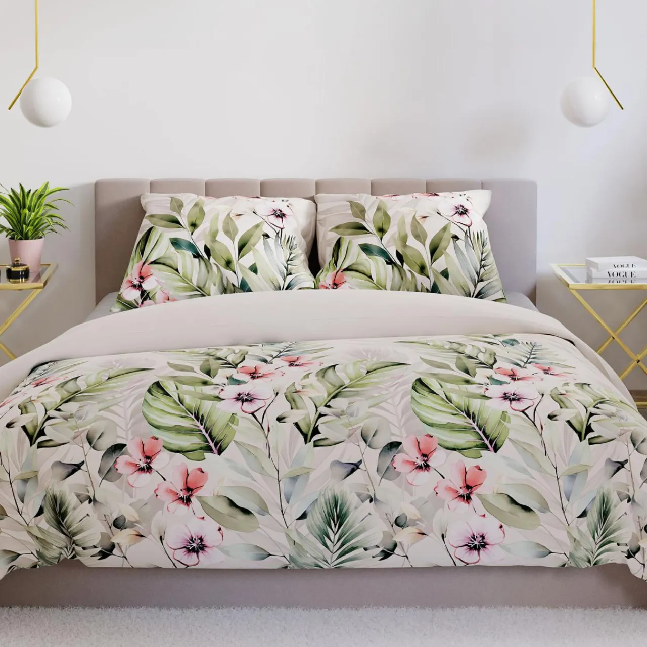 Bawełniana pościel o satynowym splocie z kolekcji PARADIS pasuje do sypialni w stylu urban jungle.