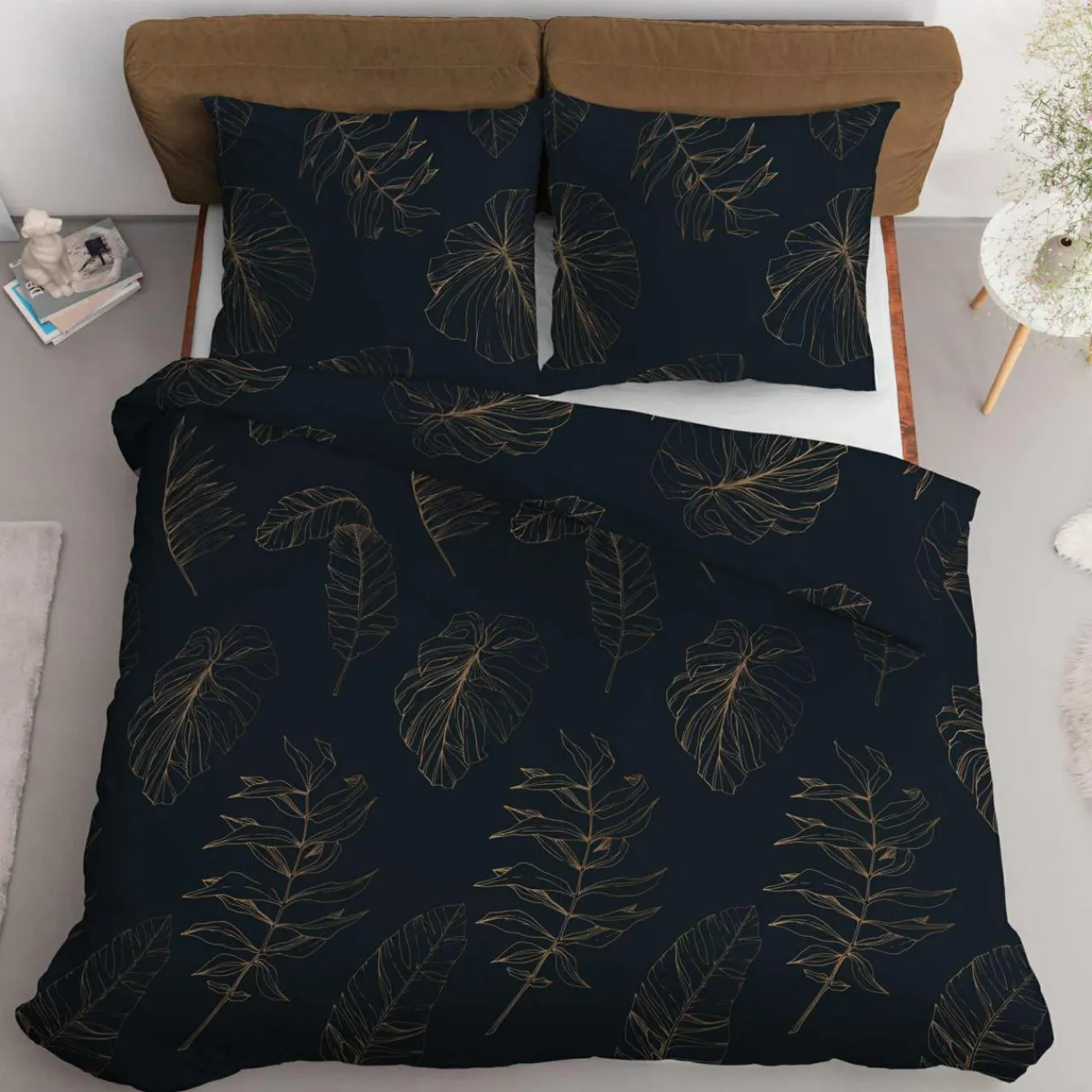 - Pościel w liście HOME SATIN pasuje do sypialni w stylu industrialnym oraz glamour.