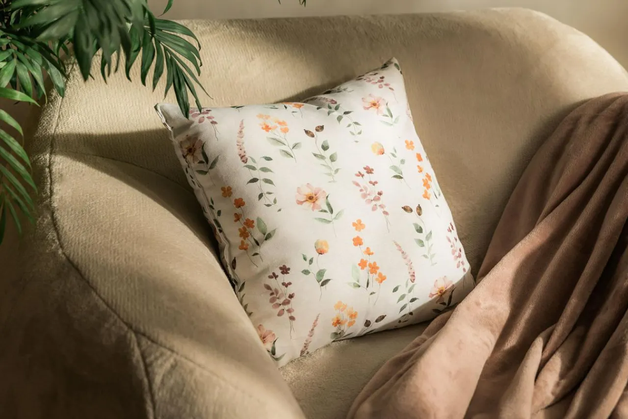 Na jasnym tle poduszki zobaczysz kwitnące polne kwiaty, które zachwycą Cię paletą kolorów. Wyobraź sobie cichy spacer przez słoneczne łąki i polany – poduszka DROBNE KWIATY przyniesie ze sobą kojące odprężenie.