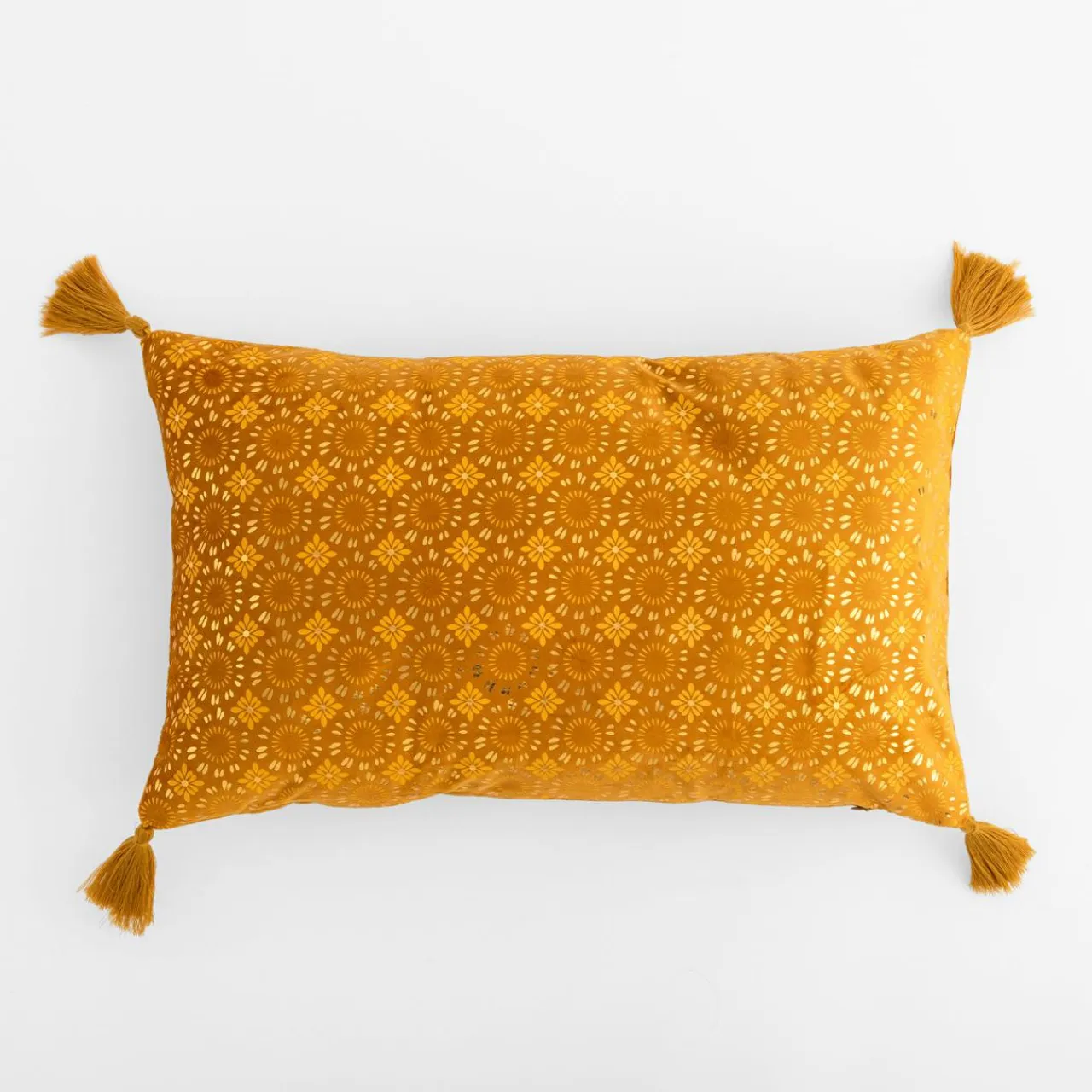 Ozdobna poszewka z kolekcji WAYNE ze złotym wzorem ozdobi salon oraz sypialnię. Lśniący wzór przykuje uwagę.