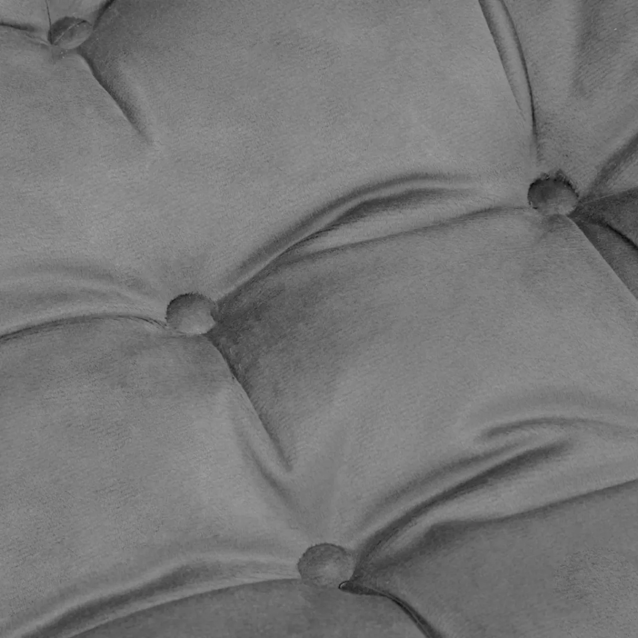 Estetyczne pikowanie i elegancka, welurowa tkanina w szarym kolorze urozmaicą aranżację kuchni, jadalni czy pokoju dziennego.