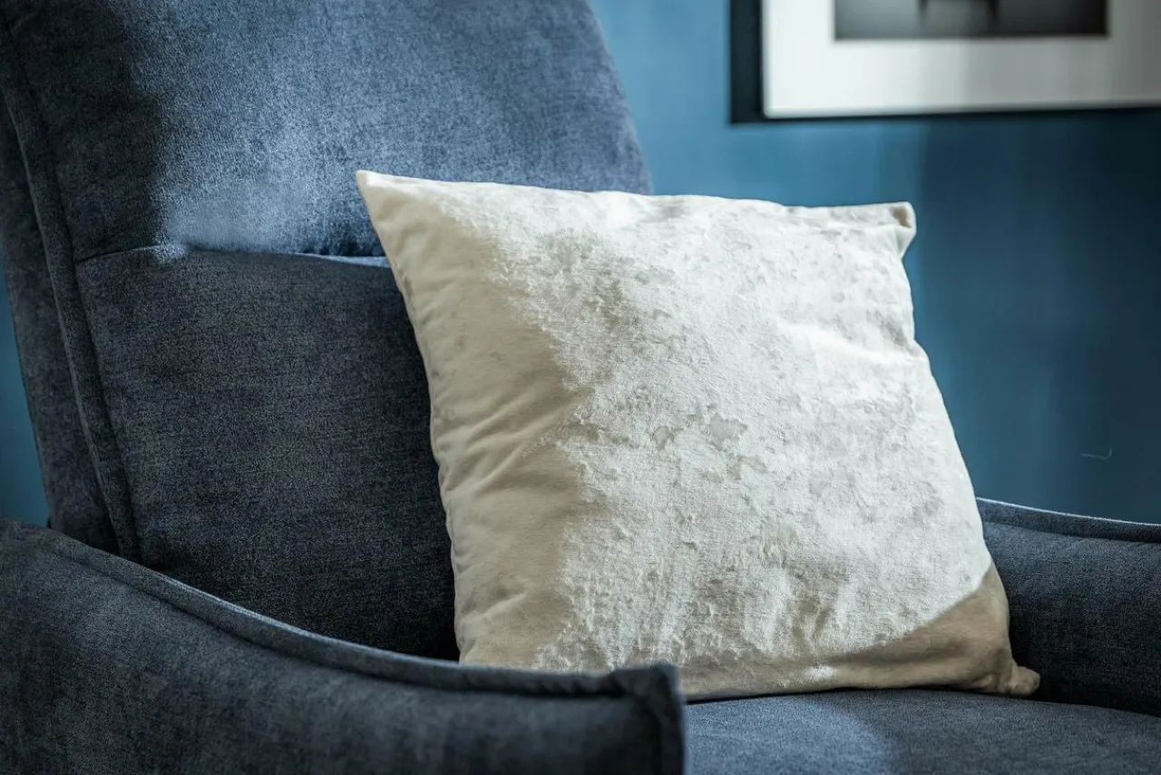 - Dopasujesz ją także do fioletowego lub turkusowego fotela. Welurowa poszewka zaakcentuje odważny, bardziej nasycony kolor mebla.