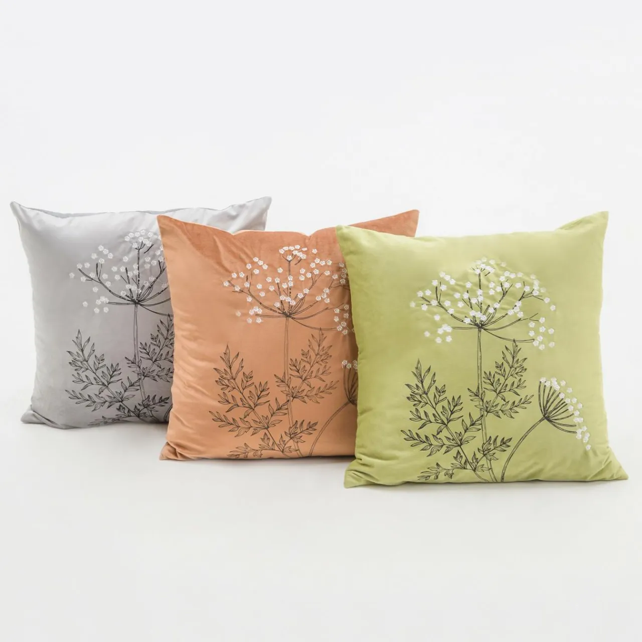 Poszewki I Poduszki Dekoracyjne|Estetica Poszewka welurowa z haftem jasnoszara ANISE 45×45 cm