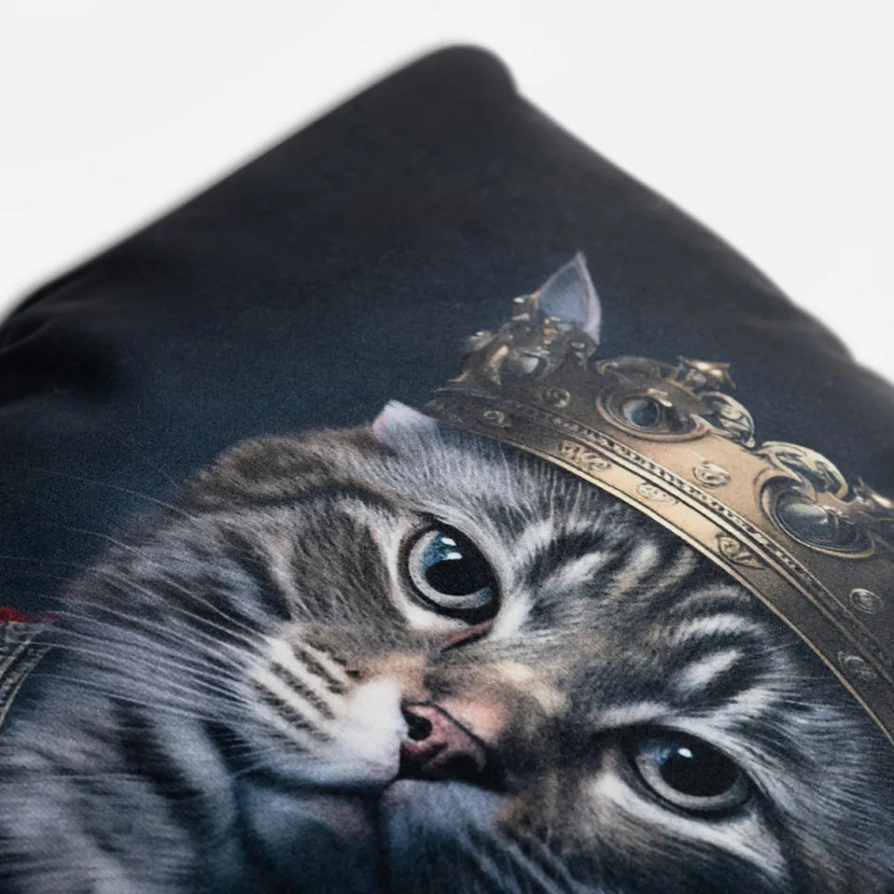 Jaśnie pan zasługuje na dekoracyjny akcent w salonie, który podkreśli jego walory – ozdobna poduszka KOT z wizerunkiem kociego króla trafI w gust miłośników mruczków.