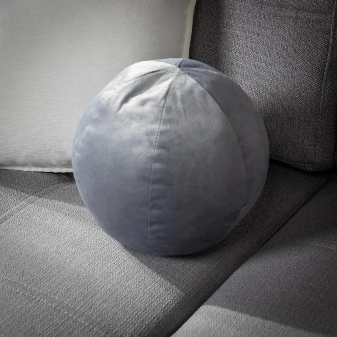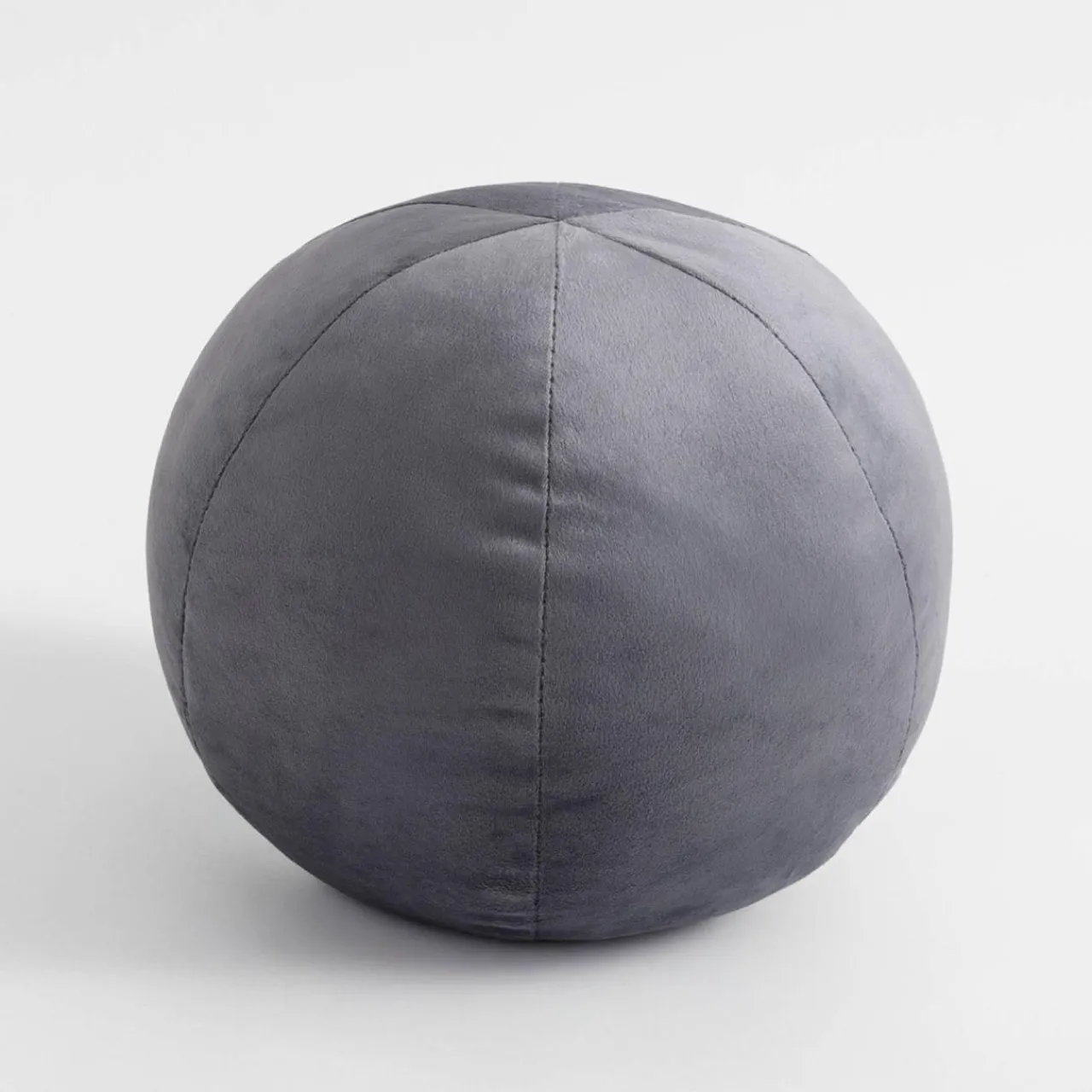 Ta szara okrągła poduszka dekoracyjna SPHERE wpasuje się w minimalistyczne lub nowoczesne wnętrza.