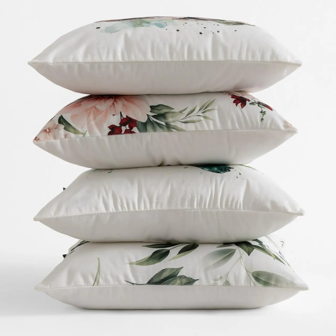 Biała poszewka w kwiaty OLIVE rozjaśni wnętrze salonu lub sypialni. Poliestrowa tkanina jest miękka w dotyku.