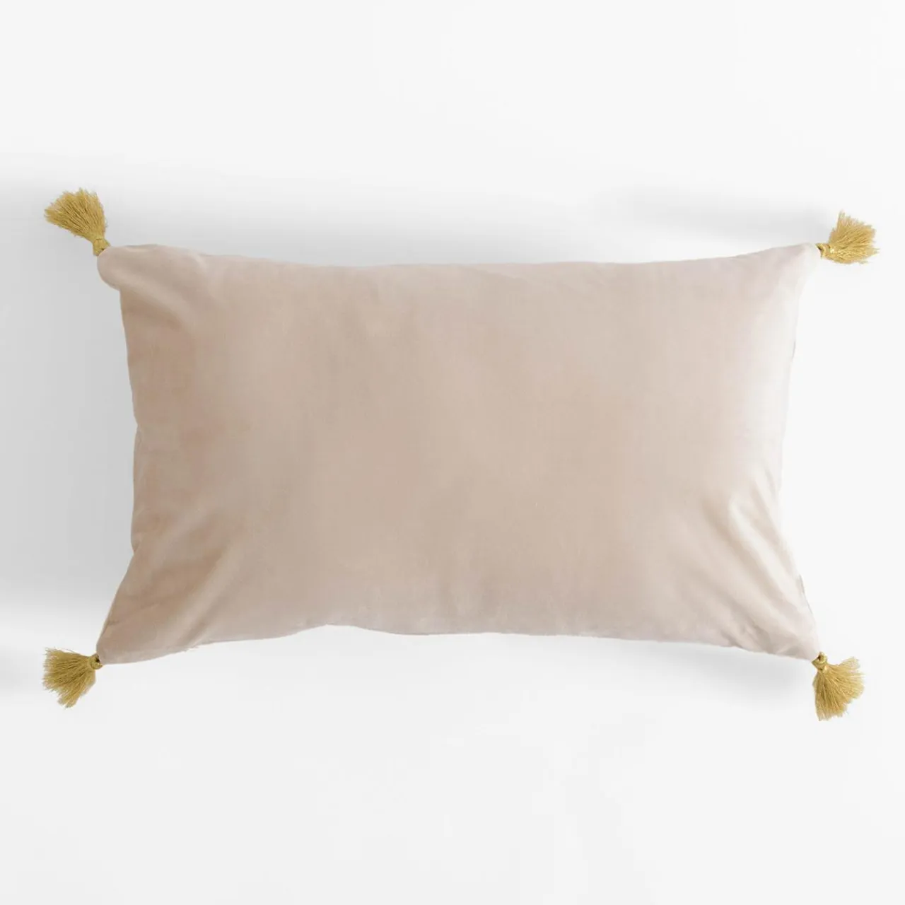 Gładka tkanina lekko się mieni, rogi poszewki są ozdobione złotymi chwostami.