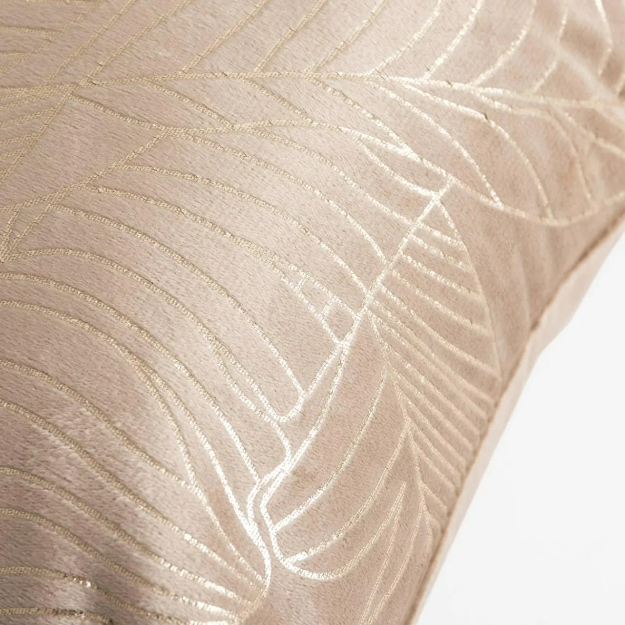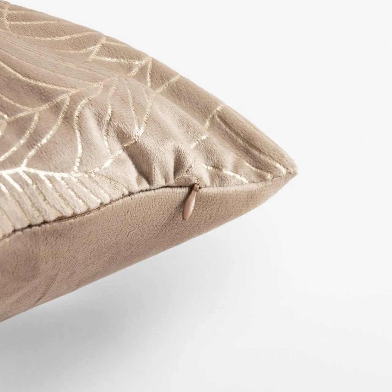 Welurowa poszewka w złote liście ESTHER udekoruje wnętrze, w którym wypoczywasz. Roślinny wzór doda aranżacji naturalności.