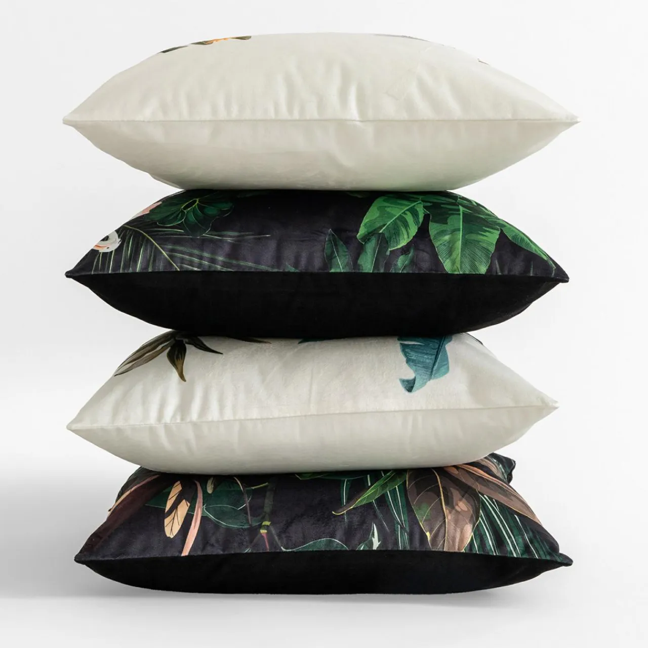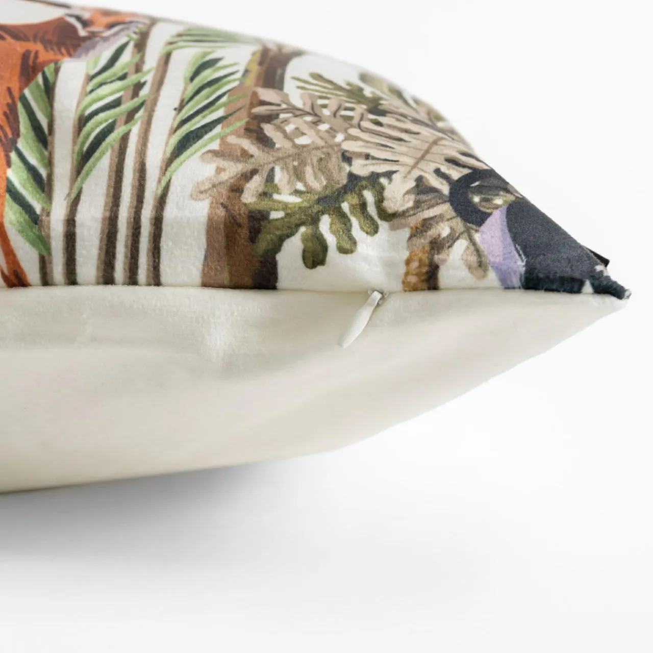 Welurowa biała poszewka MADERA podkreśli aranżację inspirowaną egzotyką.